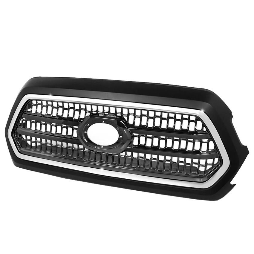 Black Front Bumper Grille with Chrome Trim for Toyota Tacoma 2016-2019, Replaces 53100-04520 TO1200418