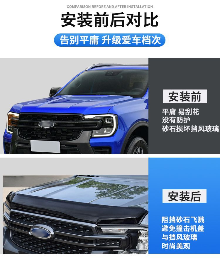 Black Hood Stone Deflector Bug Protector for Ford Ranger 2022-2023