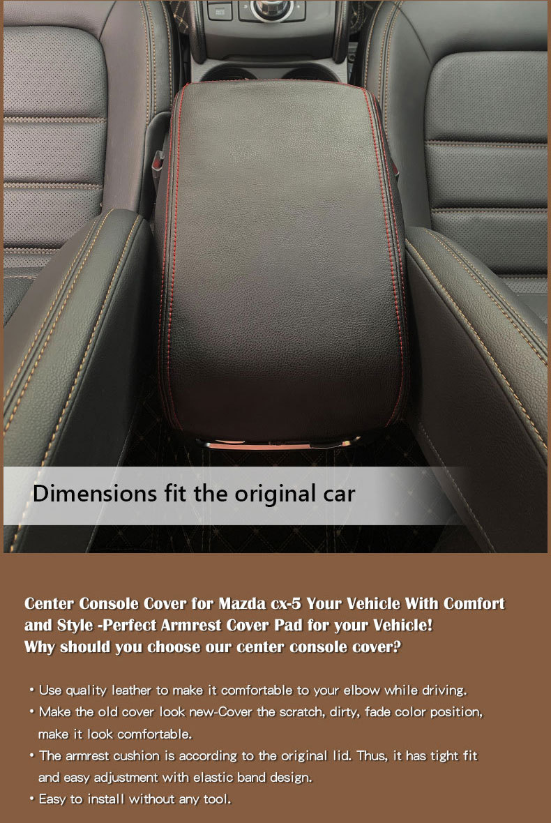 Black Leather Armrest Cover with Red Stitching for Mazda CX-5 2017-2020