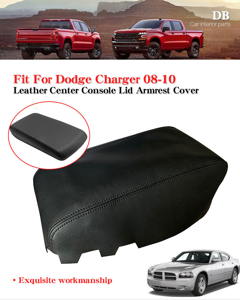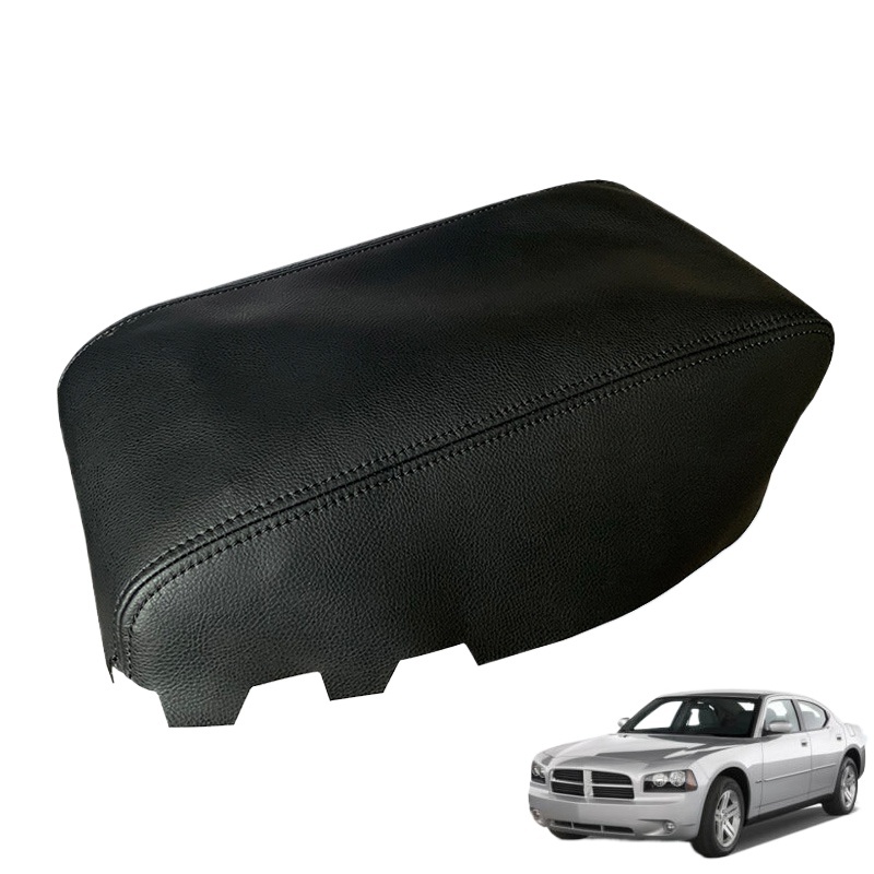 Black Leather Center Console Armrest Cover for 2008-2010 Dodge Charger