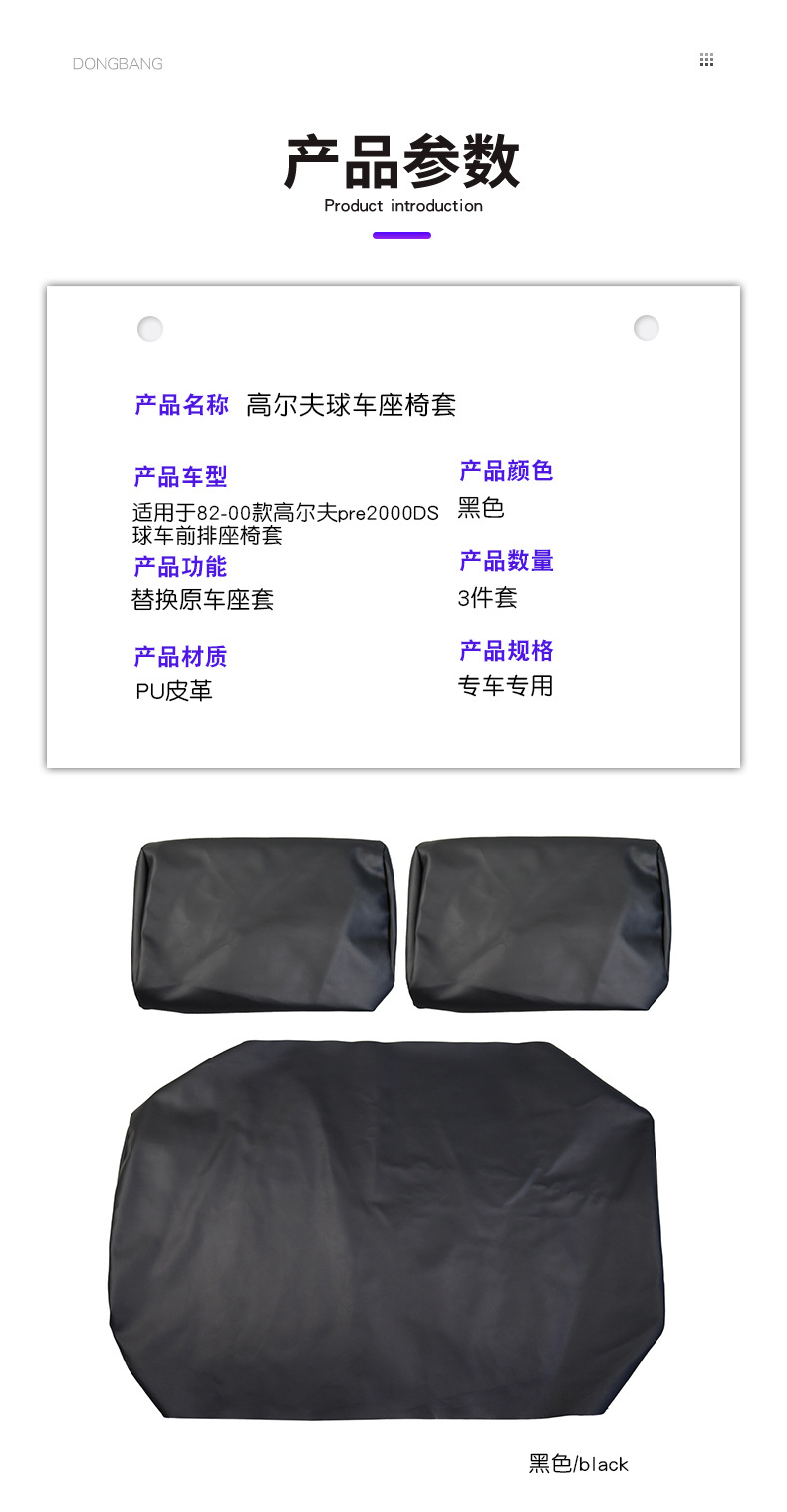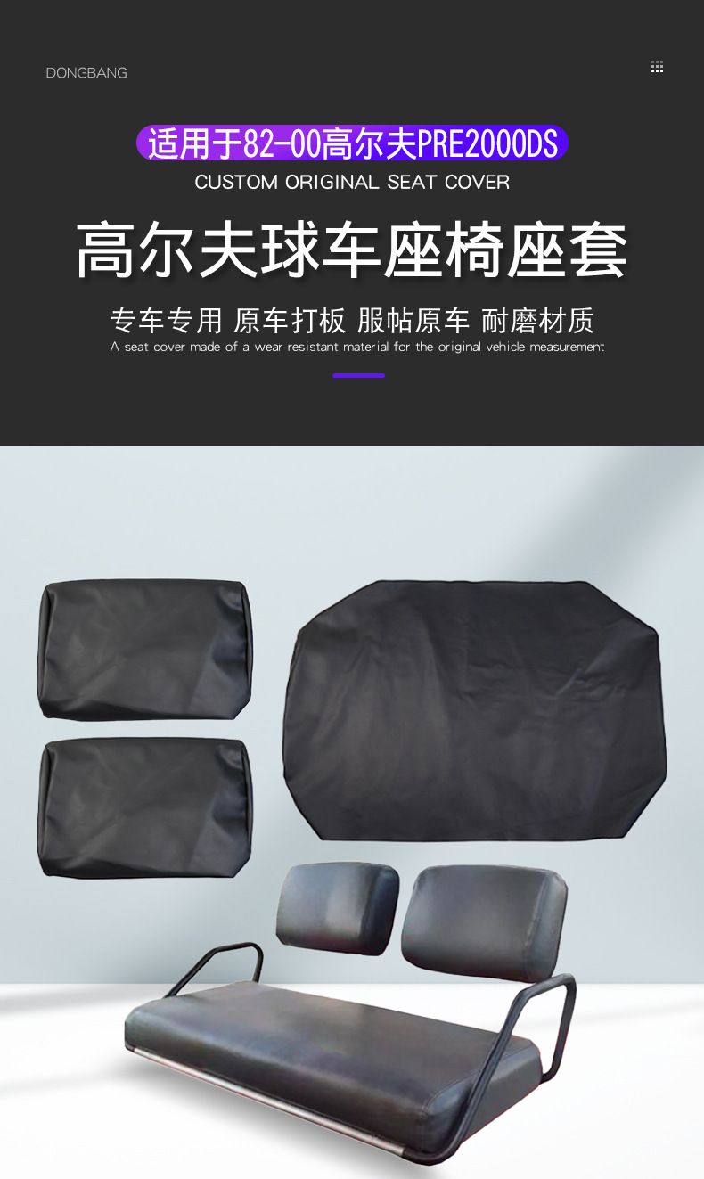 Black Leather Golf Cart Seat Cover Set for 1982-2000 Golf Cart PRE2000 Series