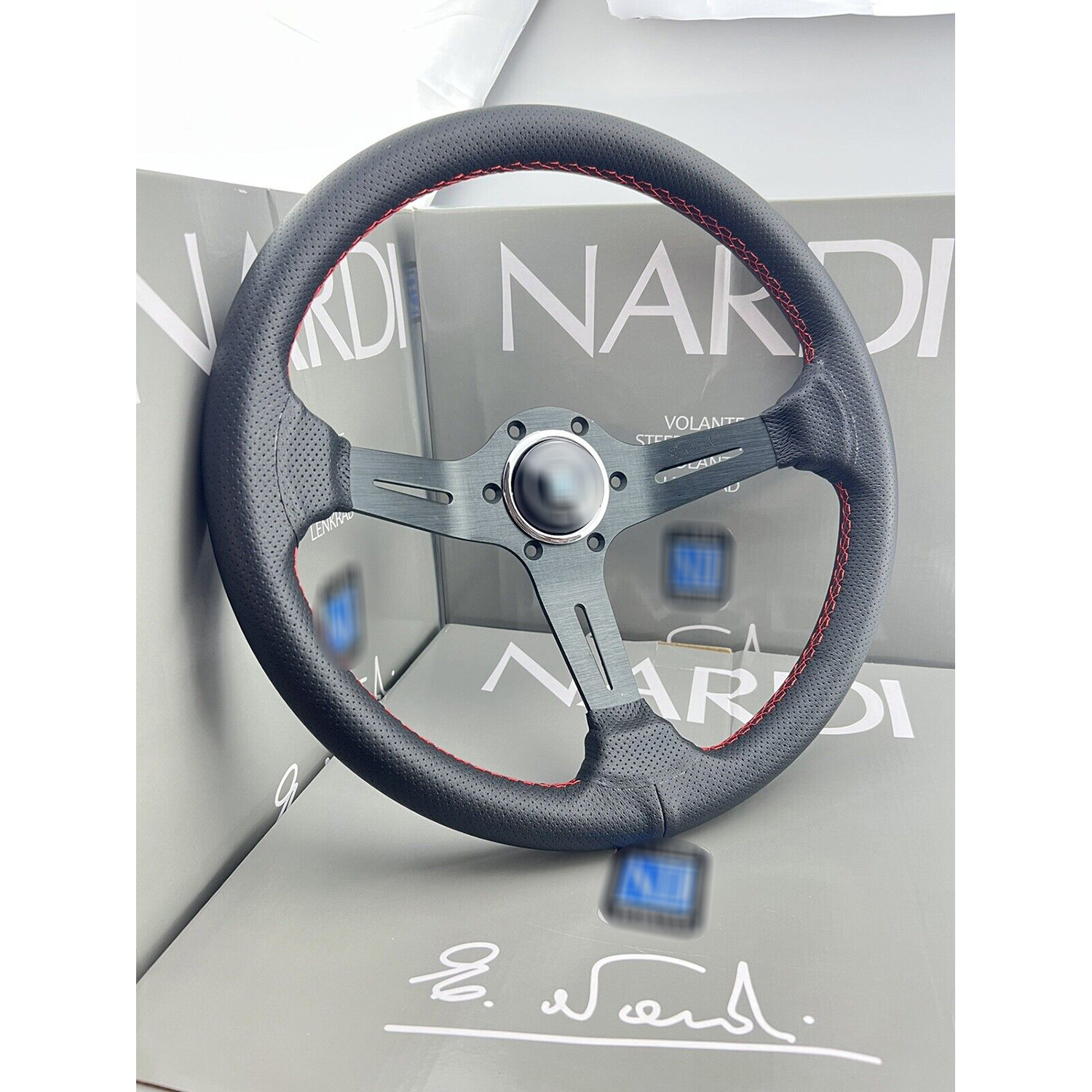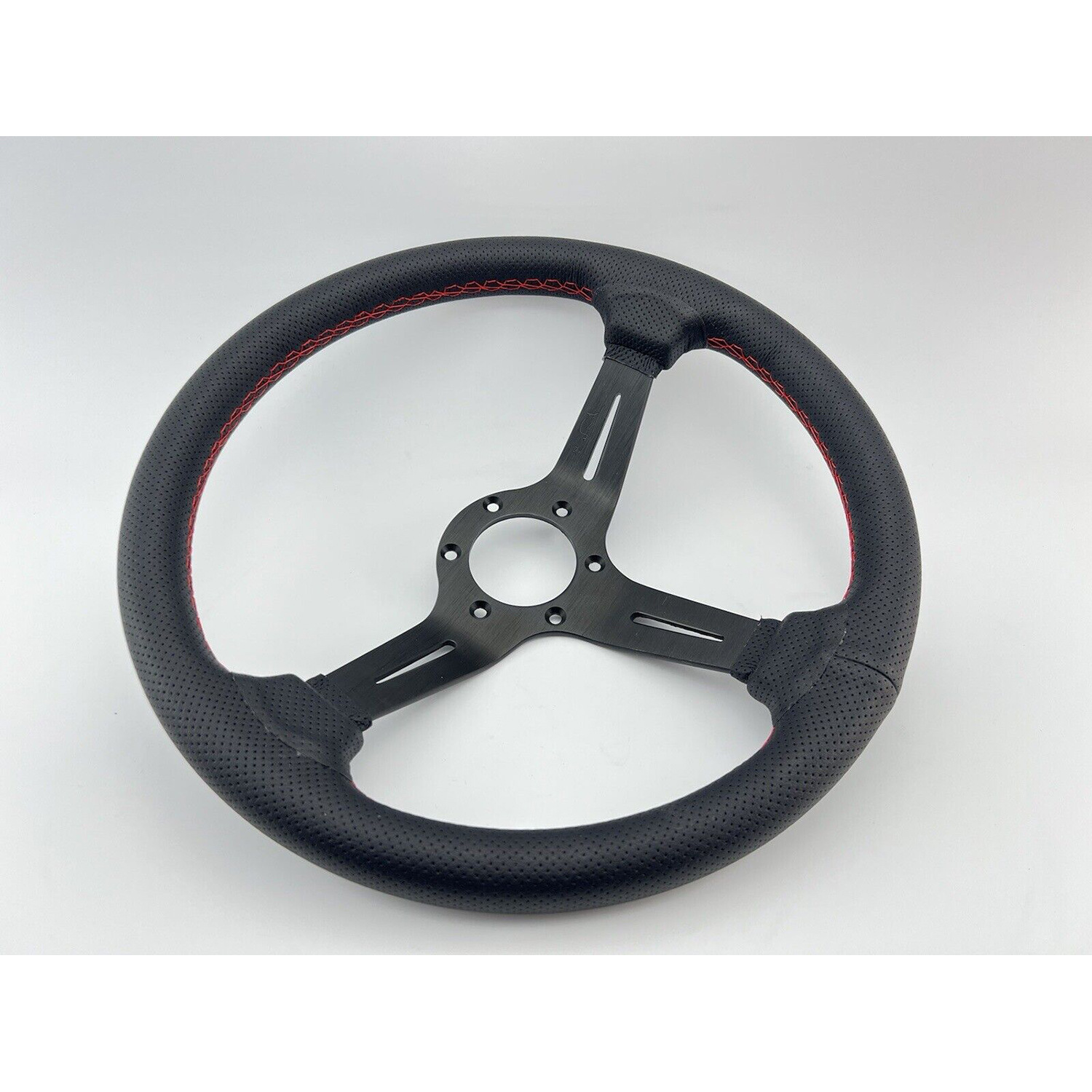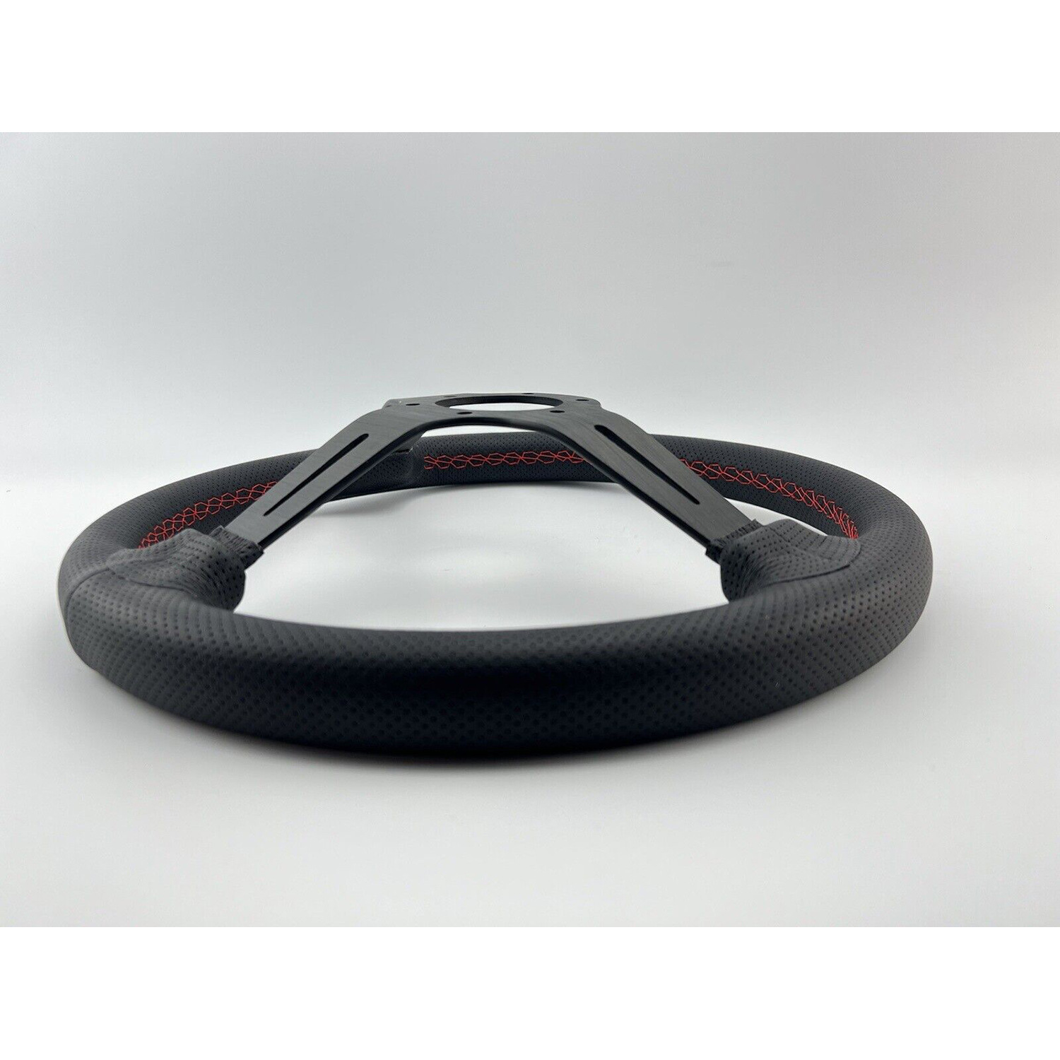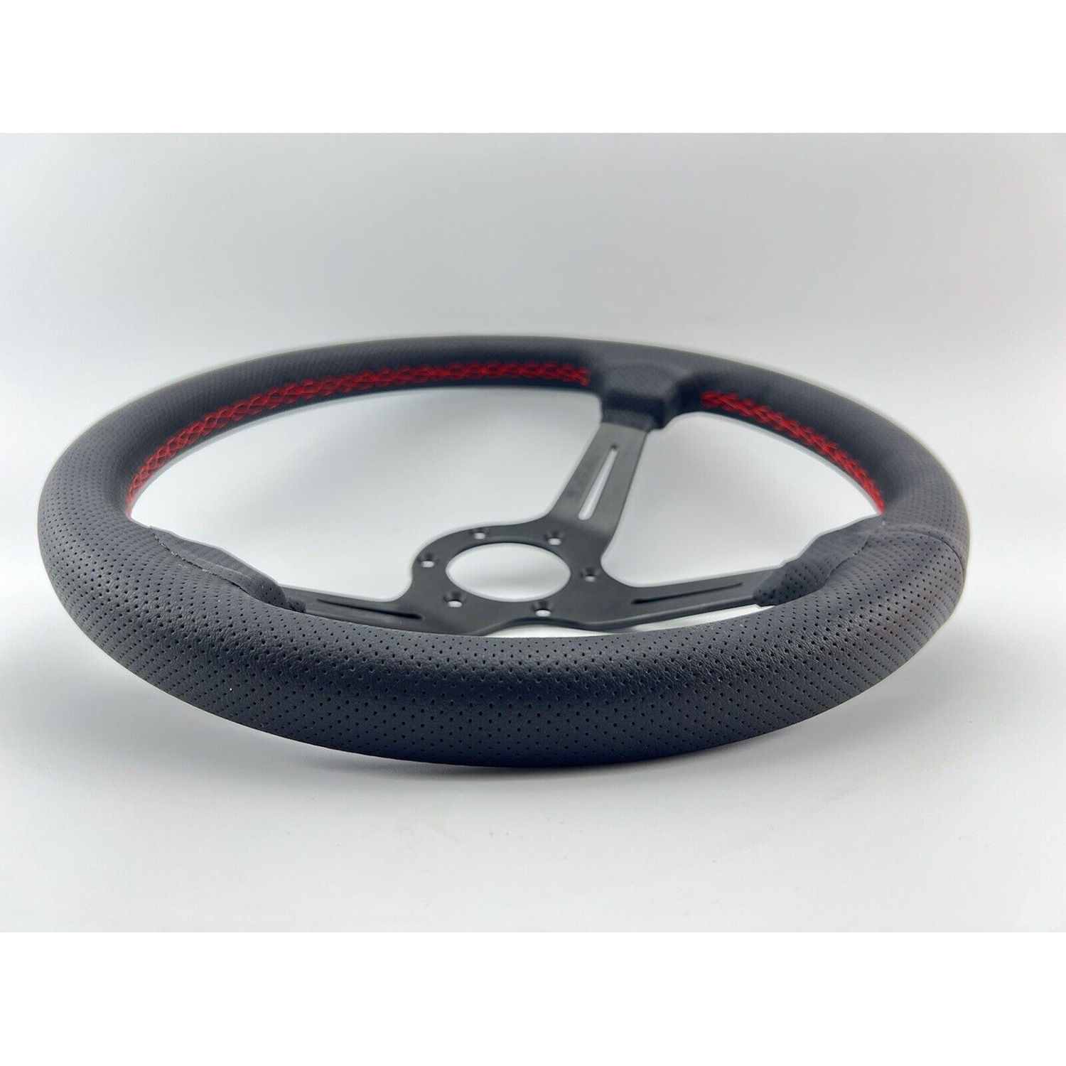 Black Leather Racing Steering Wheel 350mm Round for Universal Car Models