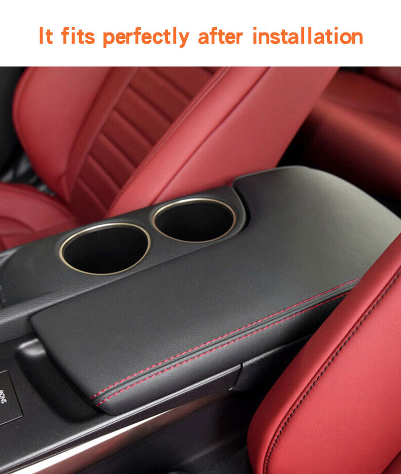 Black Microfiber Leather Center Console Armrest Cover with Red Stitching for Lexus IS250 IS350 2014-2017