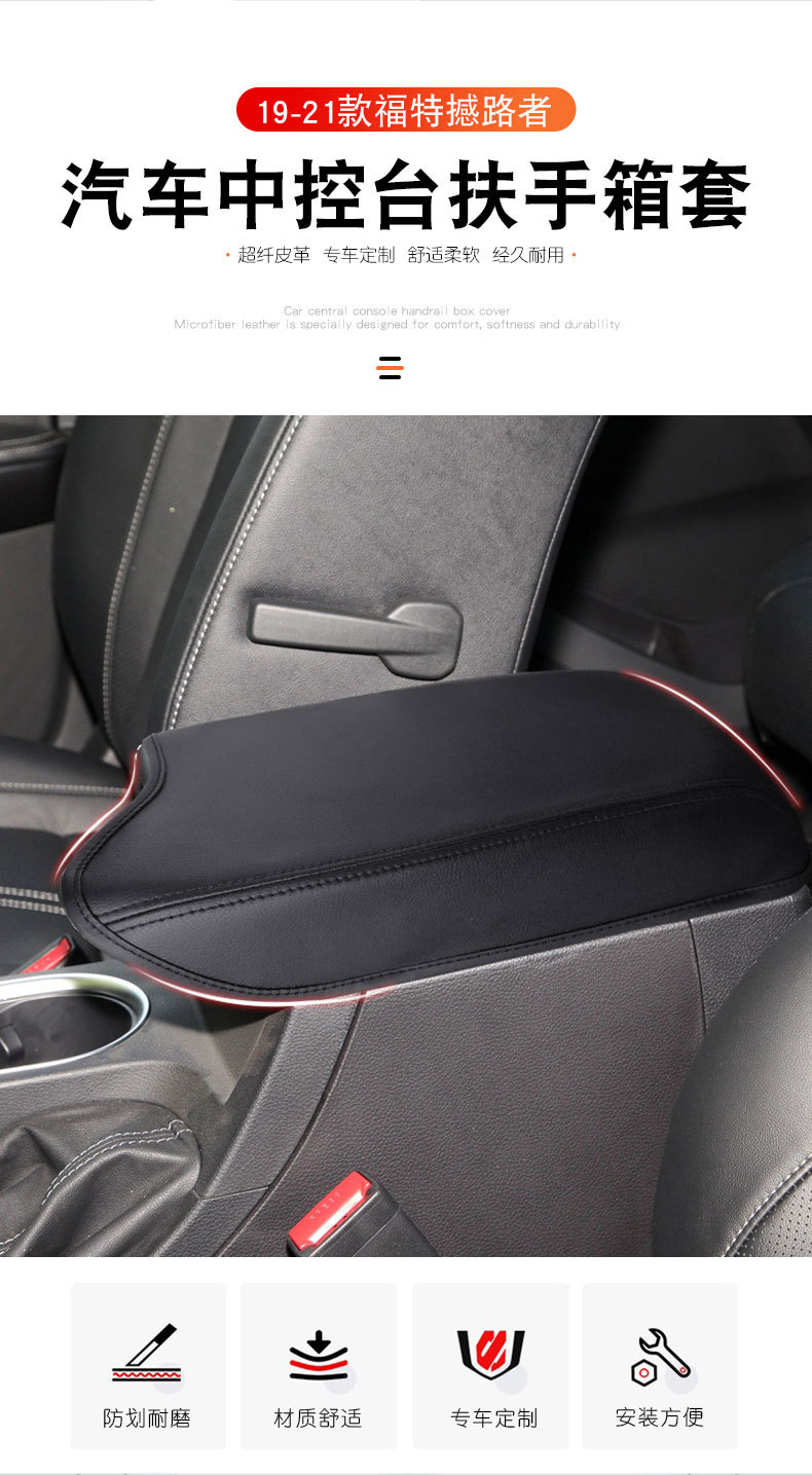 Black Microfiber Leather Center Console Armrest Cover for 2019-2021 Ford Everest