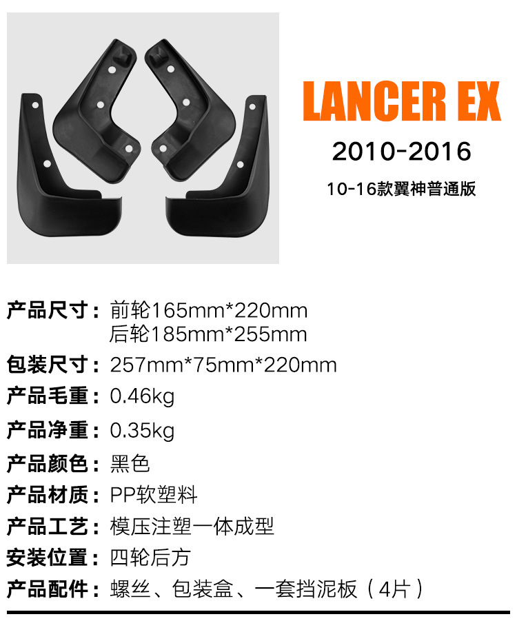 Black PP Soft Plastic Mud Flaps Splash Guards for Mitsubishi Lancer EX (2010-2016)