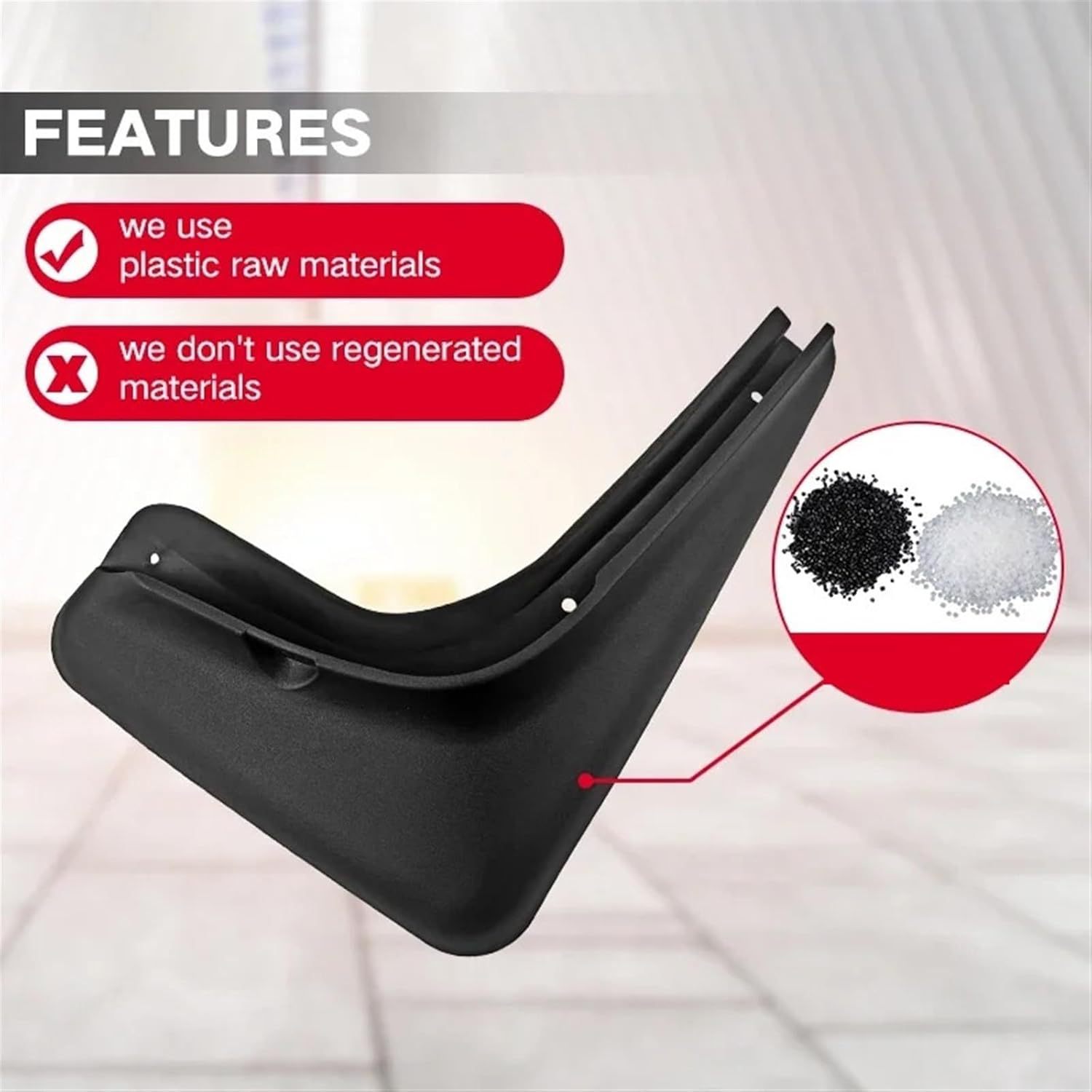 - Durable ABS Plastic Material: Constructed from high-quality, robust ABS plastic, these mud flaps offer exceptional resistance to impacts, temperature changes, and harsh road conditions, providing long-lasting protection.