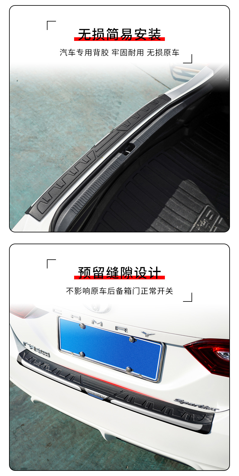 - Performance-Driven Design: Features a ribbed surface and engraved “CAMRY” logo, as shown, designed to effectively shield your car’s rear bumper from daily wear and tear.