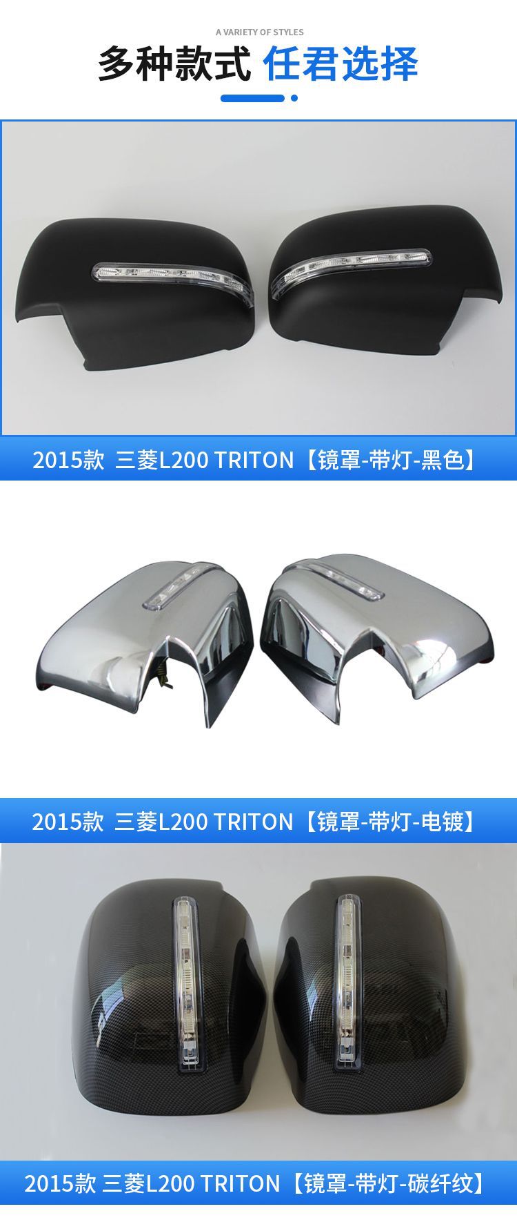 Black Rear View Mirror Cover with Lamp for Mitsubishi L200 Triton 2015-2018
