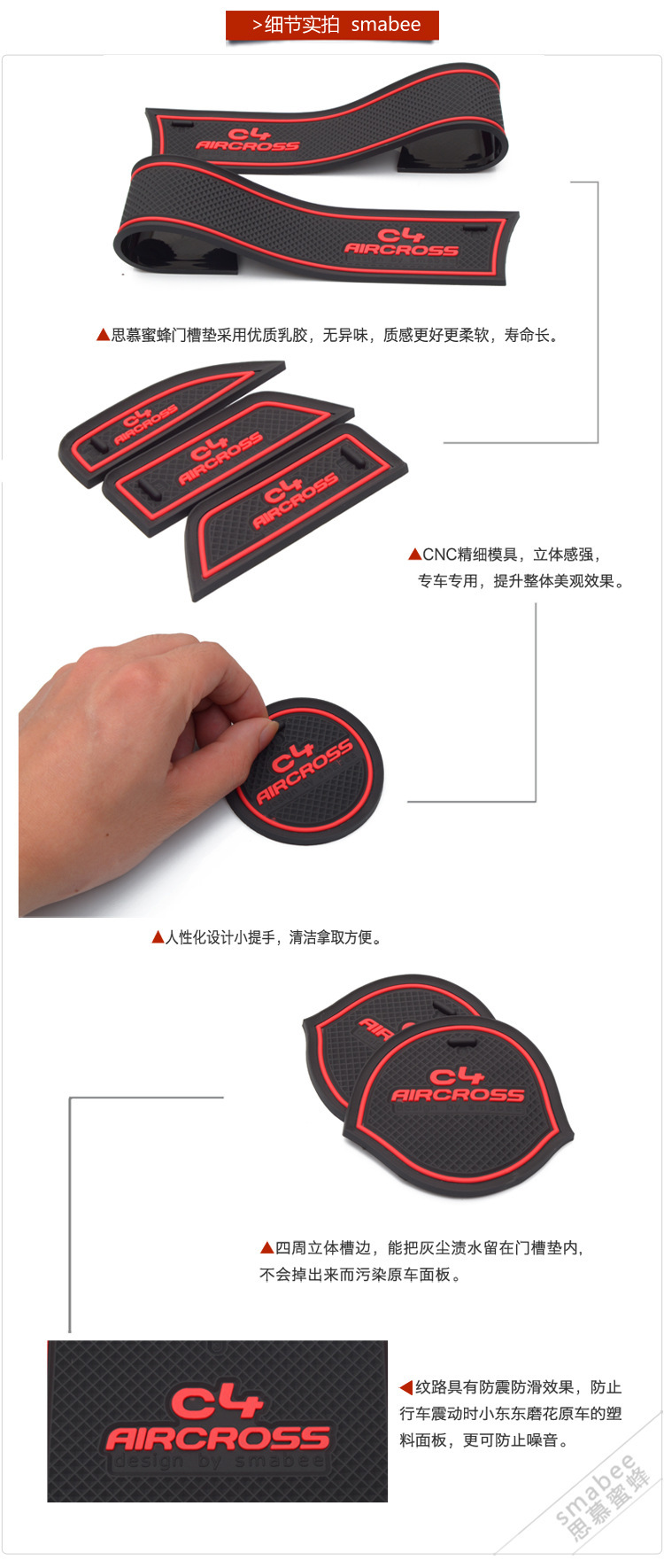 - Complete Package: Includes a full set of precisely cut interior door slot mats, cup holder mats, and armrest box mats, exactly as pictured for Citroen C4 Aircross. Please verify fitment details before purchasing.