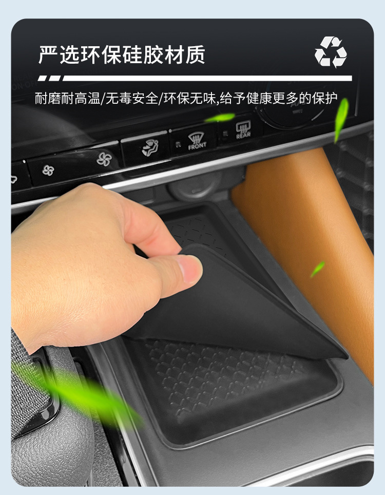 - Performance-Driven Design: Features an anti-dust and anti-slip texture, visible in the image, designed to keep items securely in place within the wireless charging compartment.