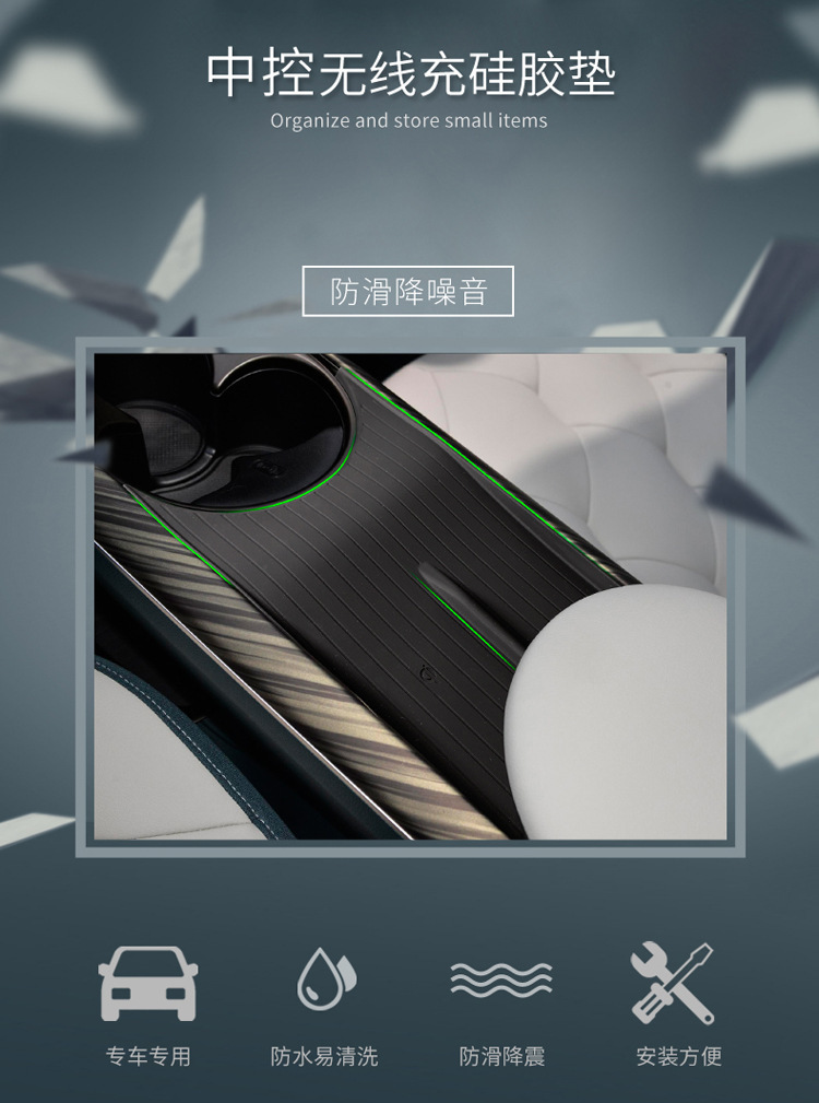 - Performance-Driven Design: Features a textured surface and raised edges to secure items in place during driving and prevent dust accumulation, maintaining a tidy console.