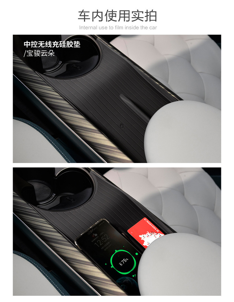 Black Silicone Wireless Charging Non-Slip Pad for Baojun Cloud 2023 Central Console Storage Tray Decoration Mat Dust Protection