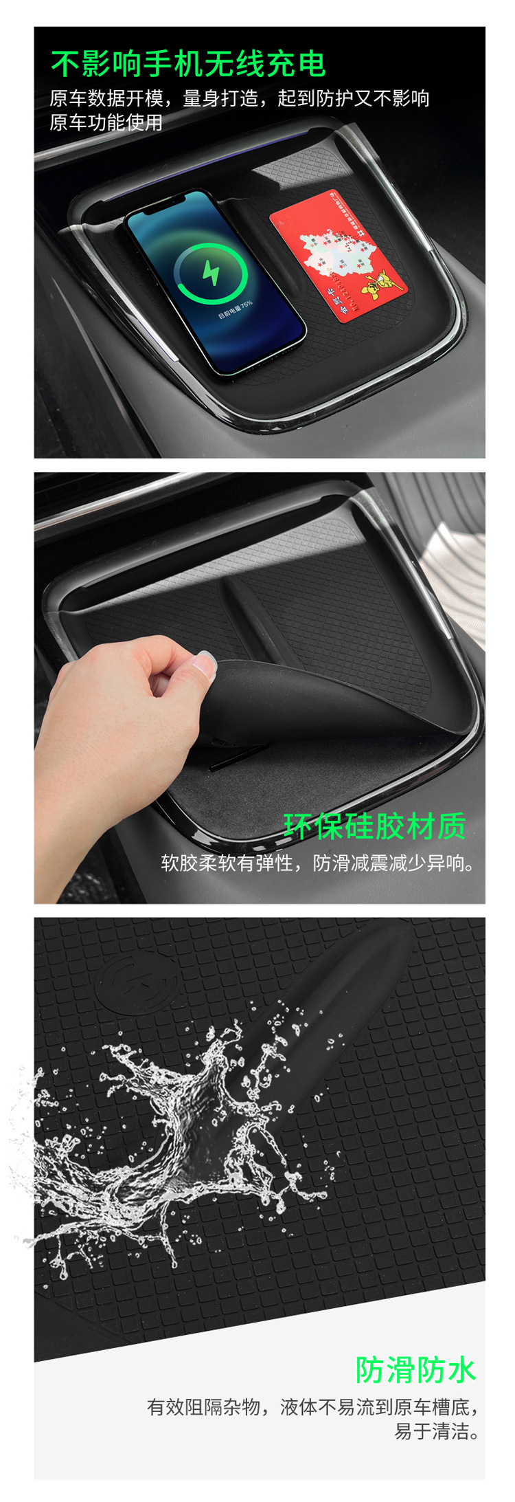 - Performance-Driven Design: Specifically designed for the wireless charging area in the center console to prevent items from sliding and reduce noise. Features a textured surface for improved grip.