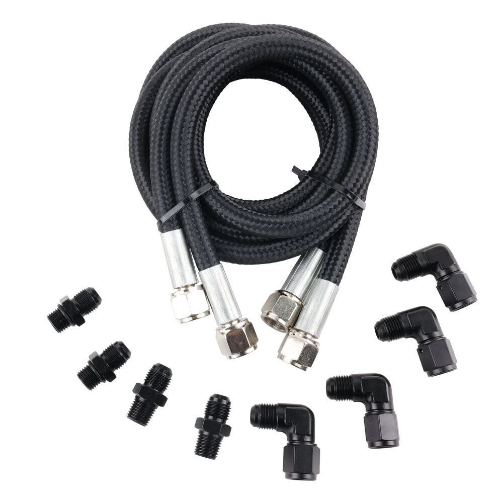 • Featuring AN-6 fittings and a flexible hose (available in 15ft or varying lengths up to 70 inches depending on the kit), this kit is designed for straightforward installation with common AN tools, offering a secure, leak-free connection without impacting original vehicle functions.