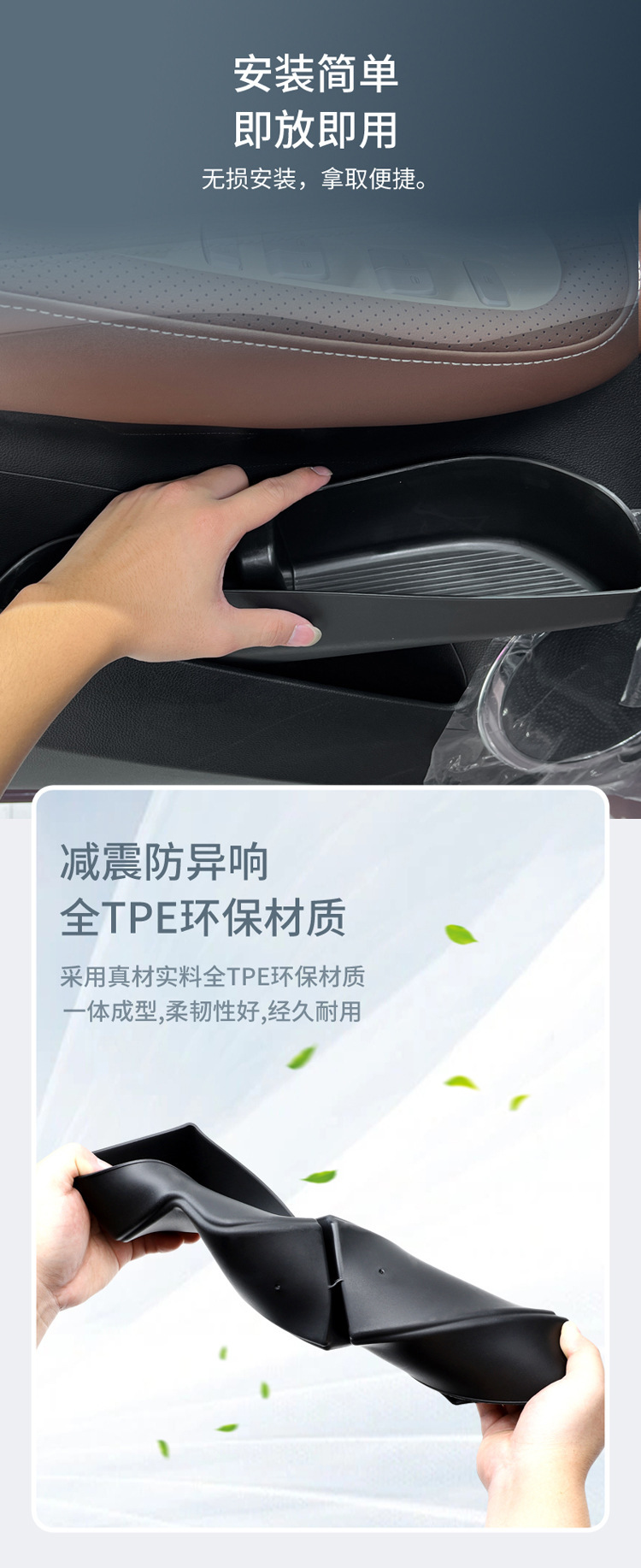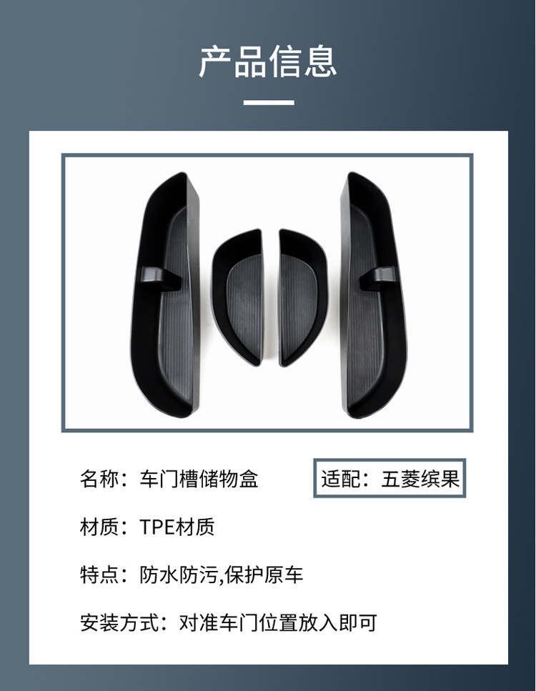 Black TPE Car Door Storage Box Door Handle Organizer for Wuling Bingo