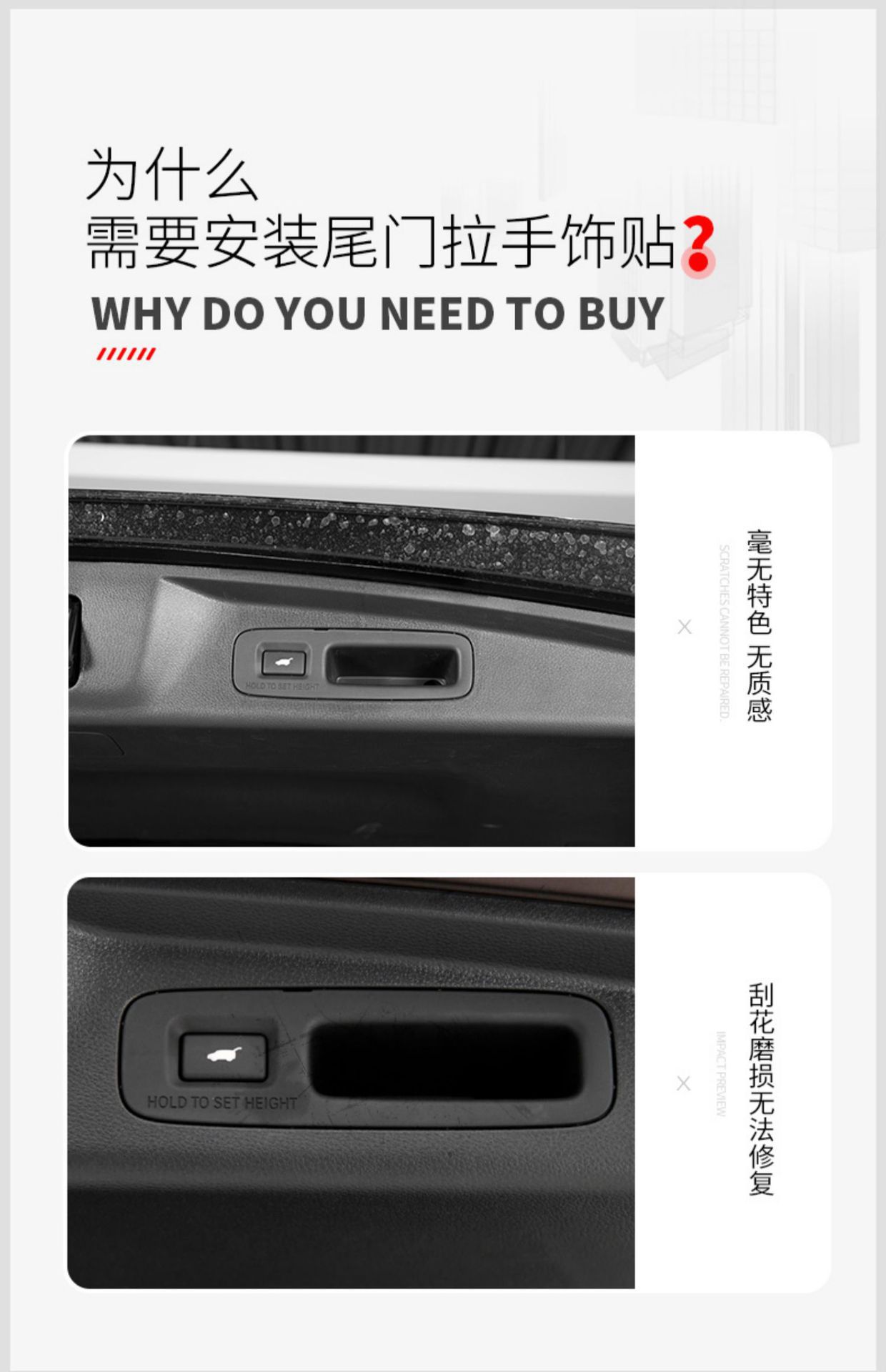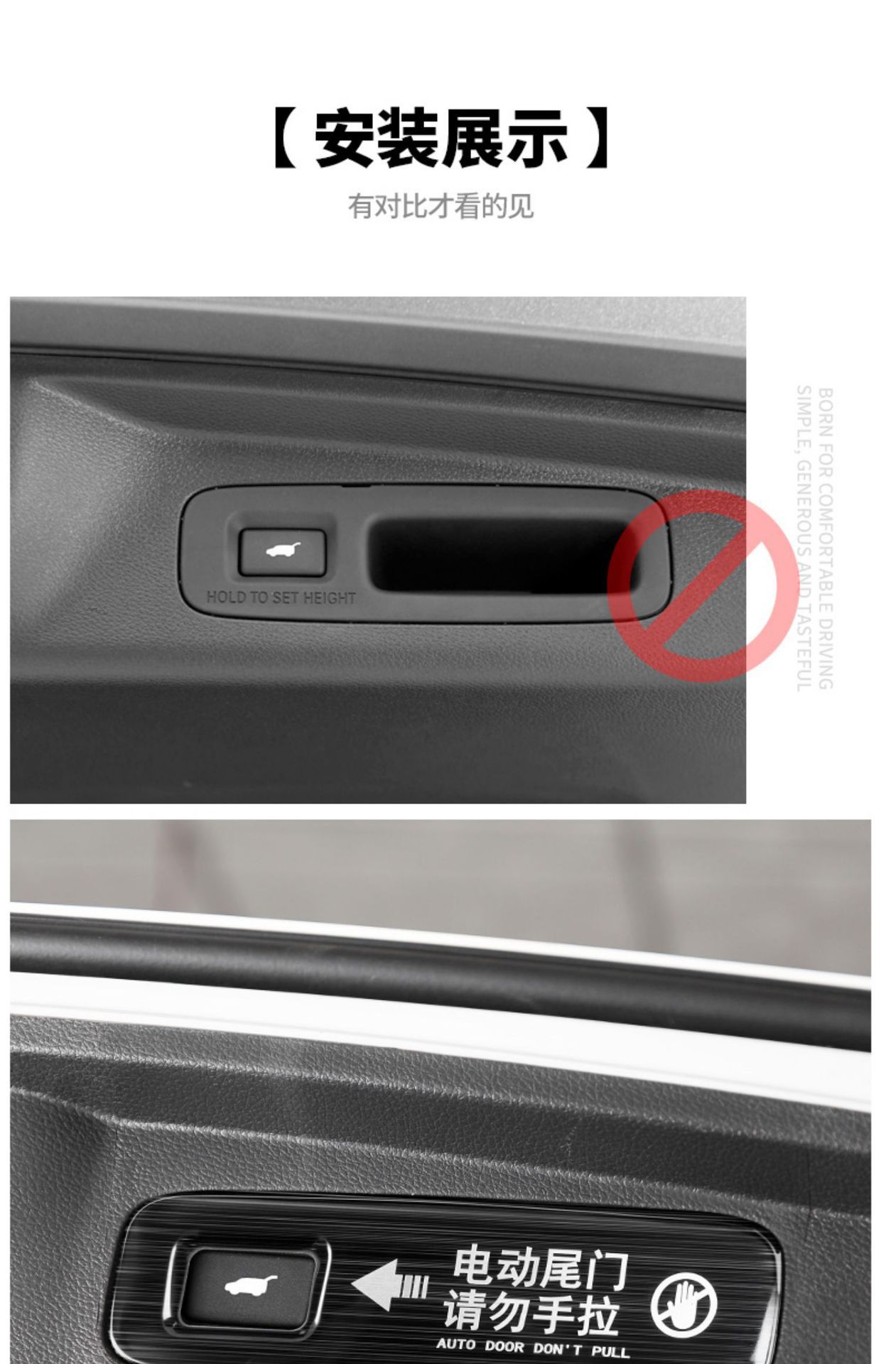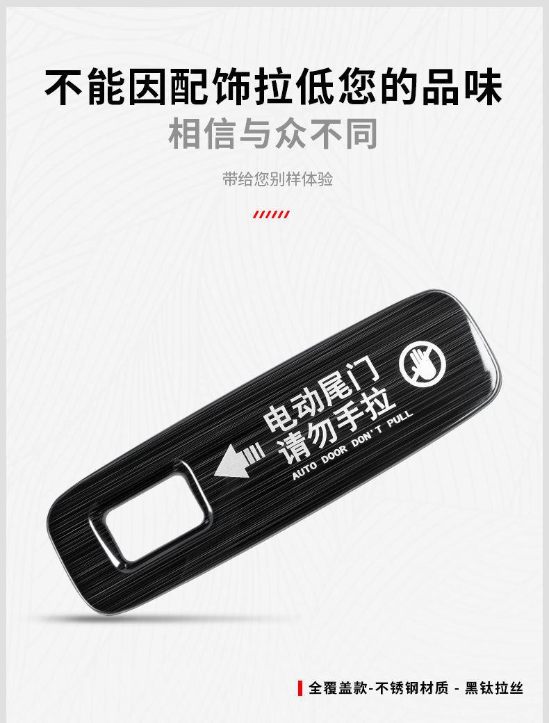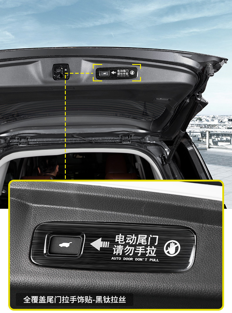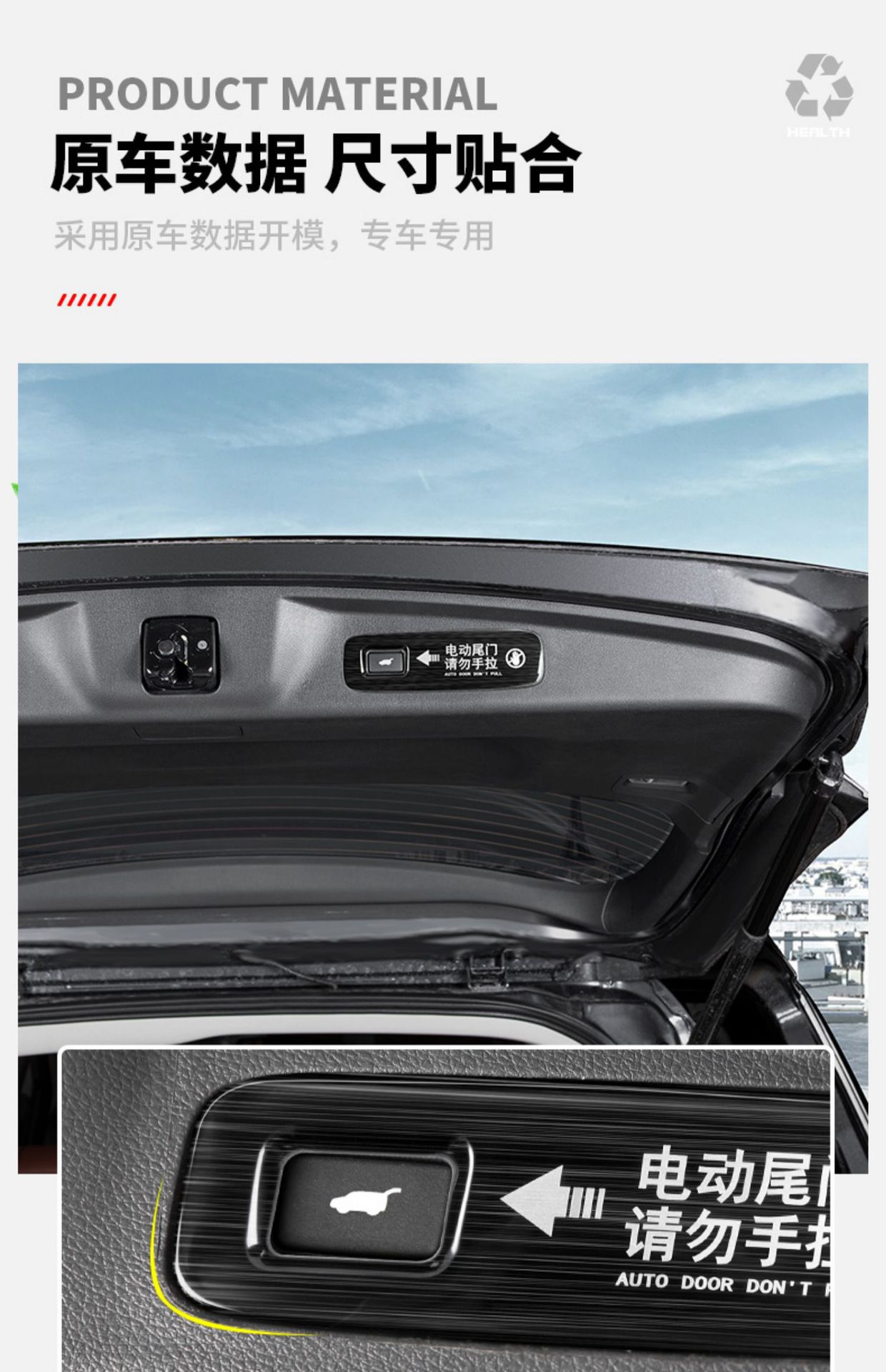- Performance-Driven Design: Features clear “AUTO DOOR DON’T PULL” inscription and icon to prevent manual pulling and protect the electric tailgate system, enhancing vehicle longevity.
