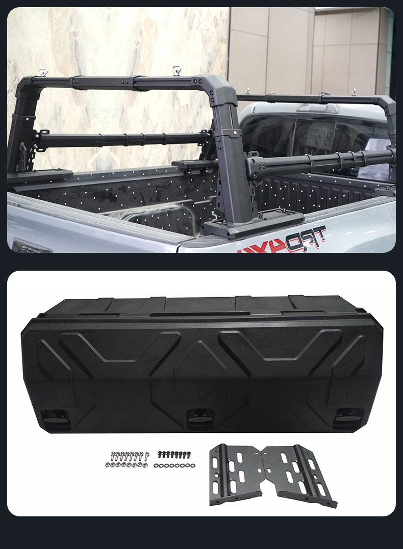 Black Truck Bed Roll Bar with Tool Box for DMAX Pickup, HILUX Pickup Truck, TRITON Pickup Truck