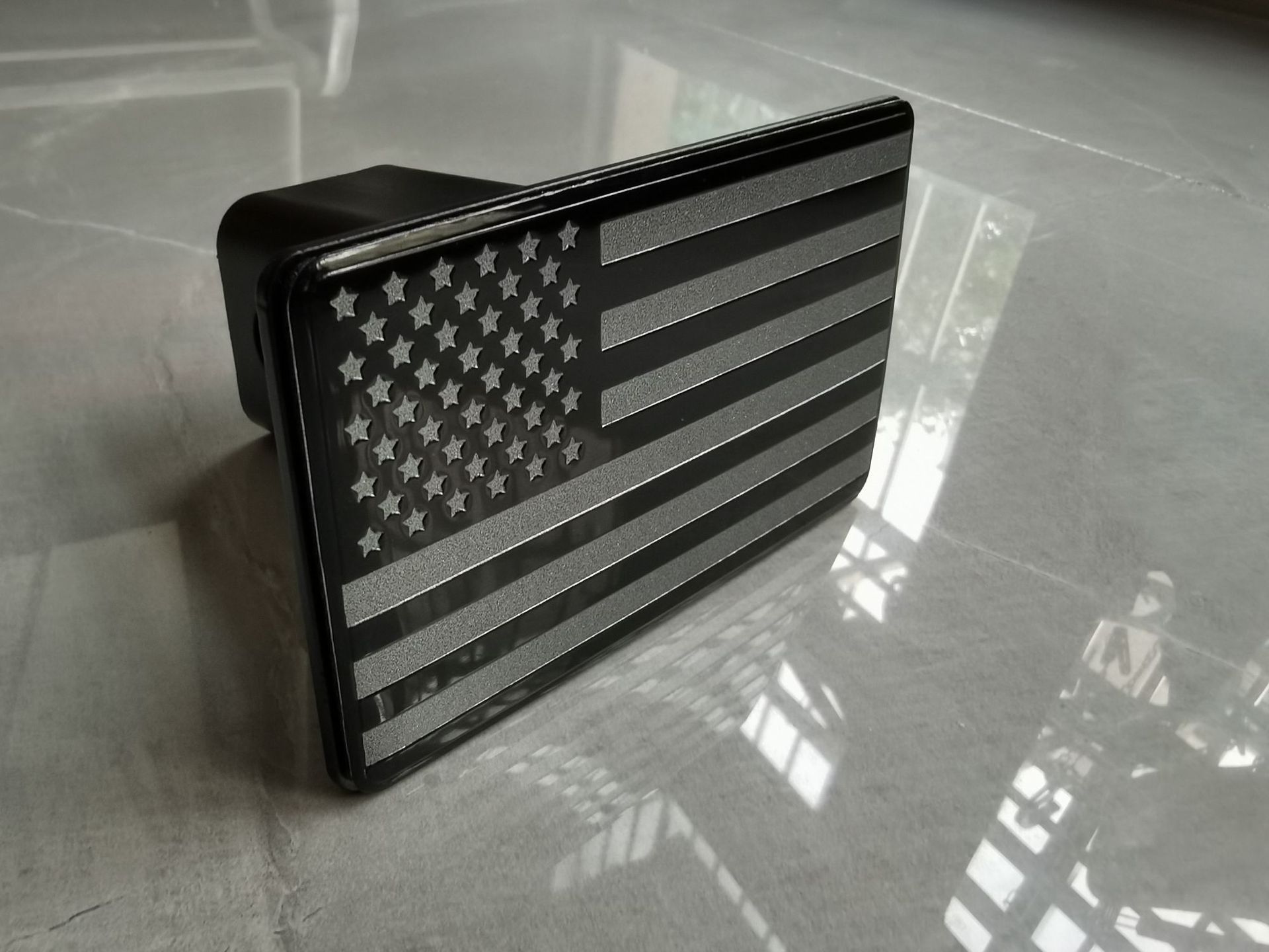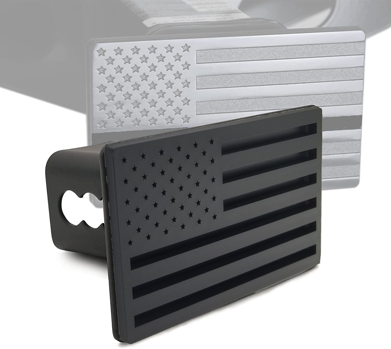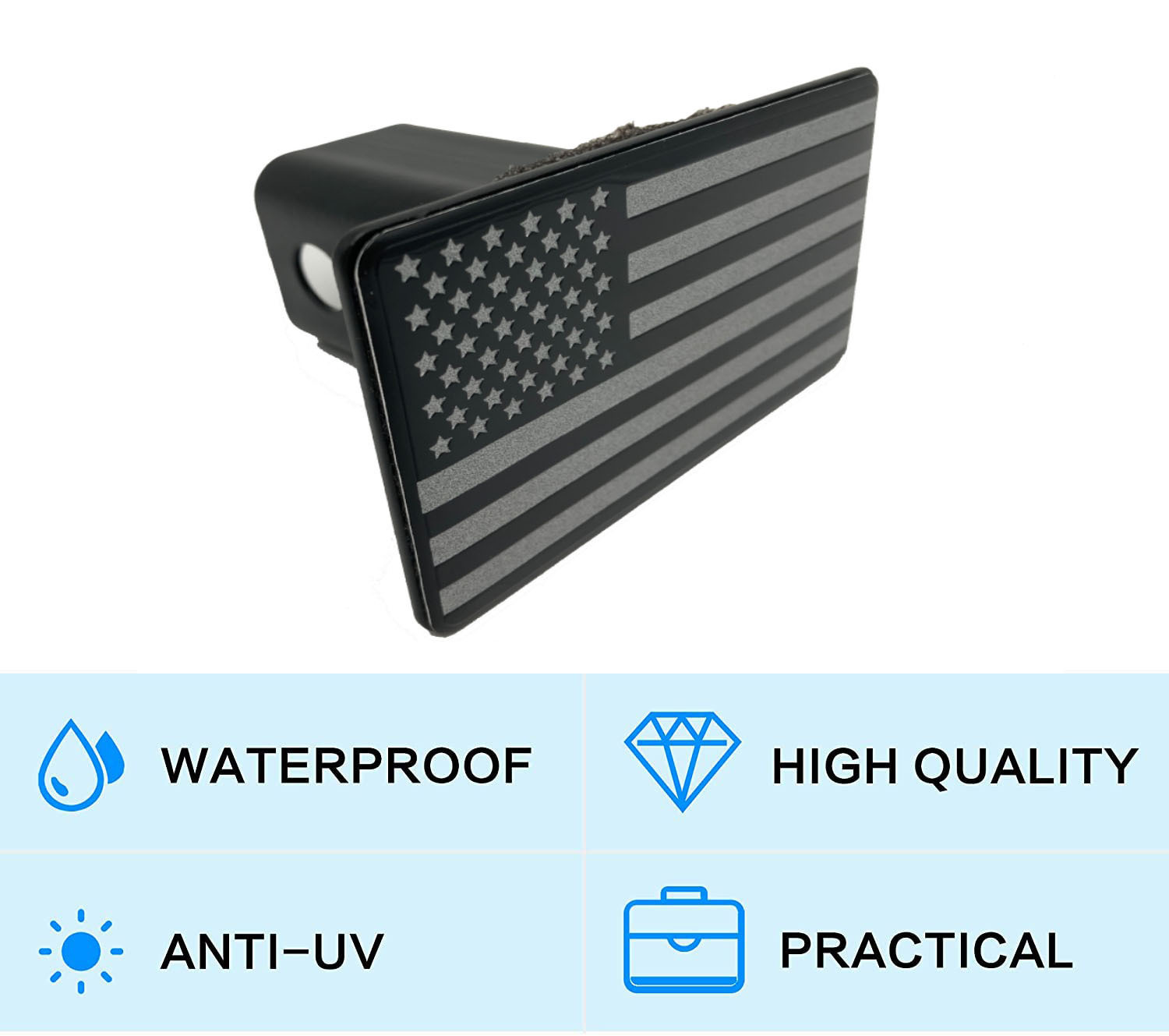 - Package Includes: One (1) Black USA Flag Metal Trailer Hitch Cover. A perfect accessory for securing your hitch receiver while showcasing national pride and adding a distinctive touch to your vehicle.