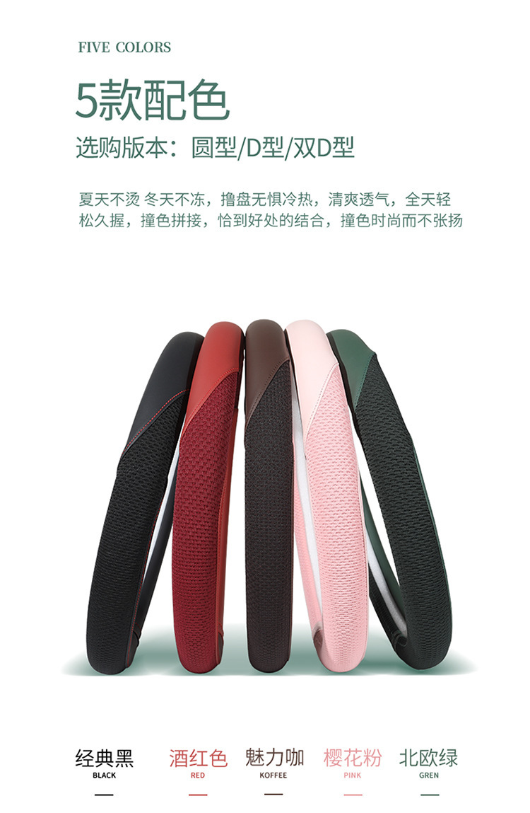 - Stylish Aesthetic: Available in Nordic Green, Charming Coffee, Classic Black, Cherry Blossom Pink, and Wine Red, and various shapes (round, D-shaped, double D-shaped), it adds a touch of sportiness and elegance to your car’s interior, enhancing its overall style.
