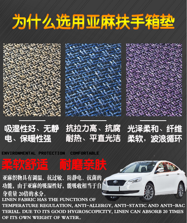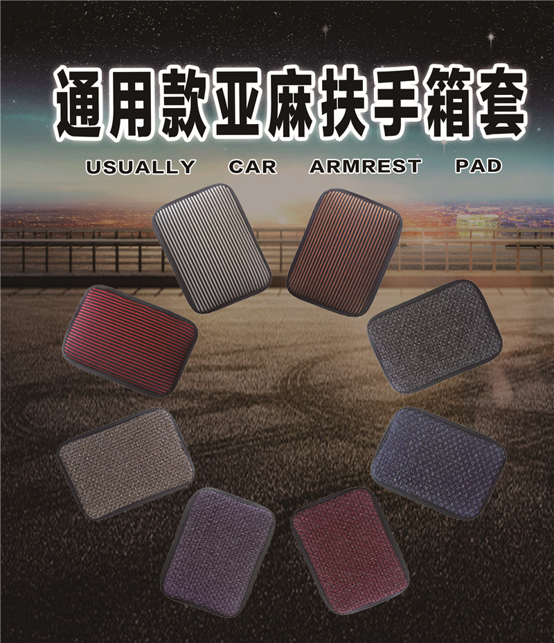 Breathable Linen Fabric Car Armrest Cover Pad for All Seasons Anti-Slip Central Console Protector