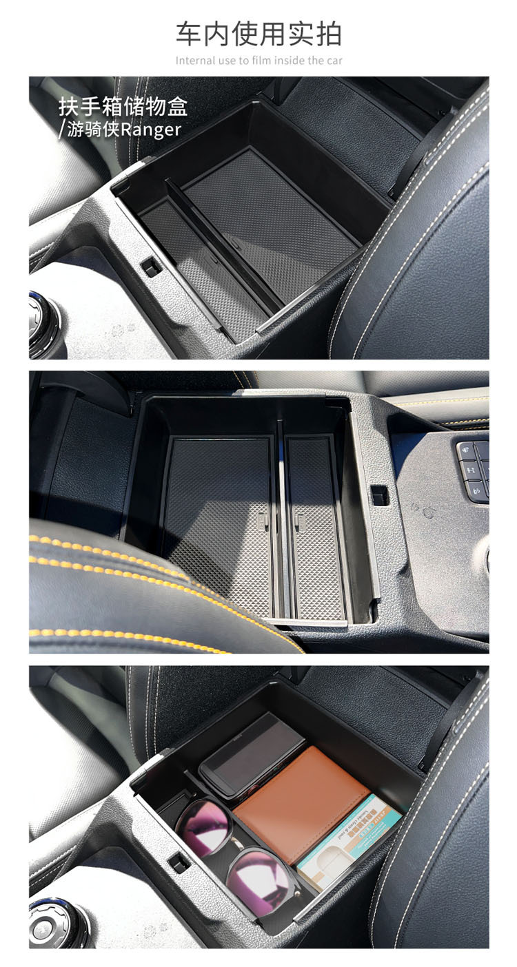 Car Center Console Armrest Storage Box Organizer Tray for Ford Ranger 2024-2025 (Electric Handbrake Version)