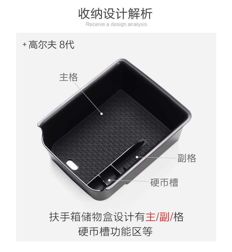 Car Center Console Armrest Storage Box Tray Insert Organizer with Non-Slip Mat for Volkswagen Golf 8 Mk8