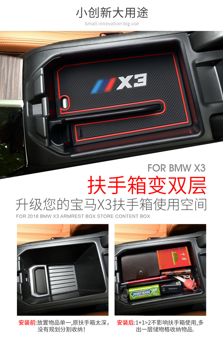 - Direct Fitment: A perfect replacement for the center console armrest storage area. Compatible with BMW X3 2018-2022.
