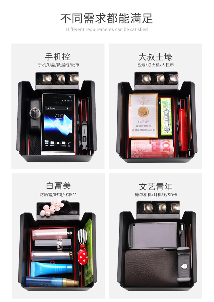 - Enhanced Organization: Designed to optimize the storage space within your armrest, providing separate compartments for coins, keys, phones, and other small items, as shown.
