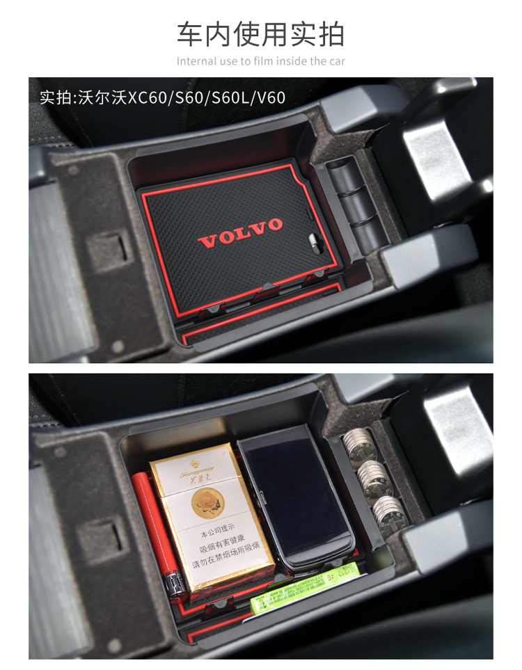 Car Center Console Armrest Storage Box Organizer Tray for Volvo XC60 S60 S60L V60