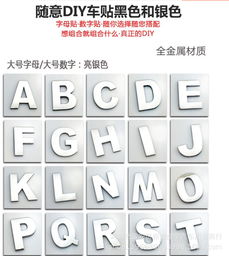 Car DIY English Letter Sticker Metal Auto Emblem Decal Chromed Silver for Universal Car Body Machine Cover Tail