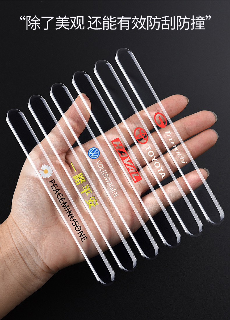 - Complete Package: Includes multiple pieces of transparent car door edge protector strips, exactly as pictured with various brand logos and designs.