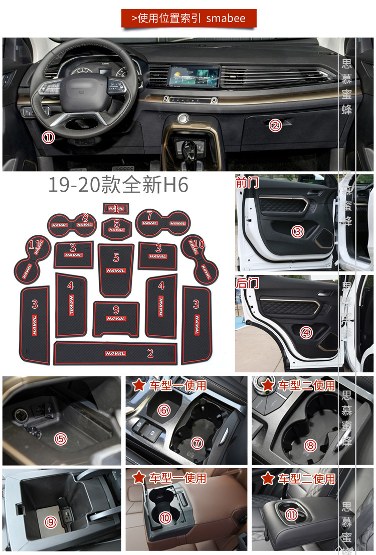 Car Door Slot Cup Holder Anti-Slip Mat Interior Dust-proof Pad for Haval H6 2017-2020