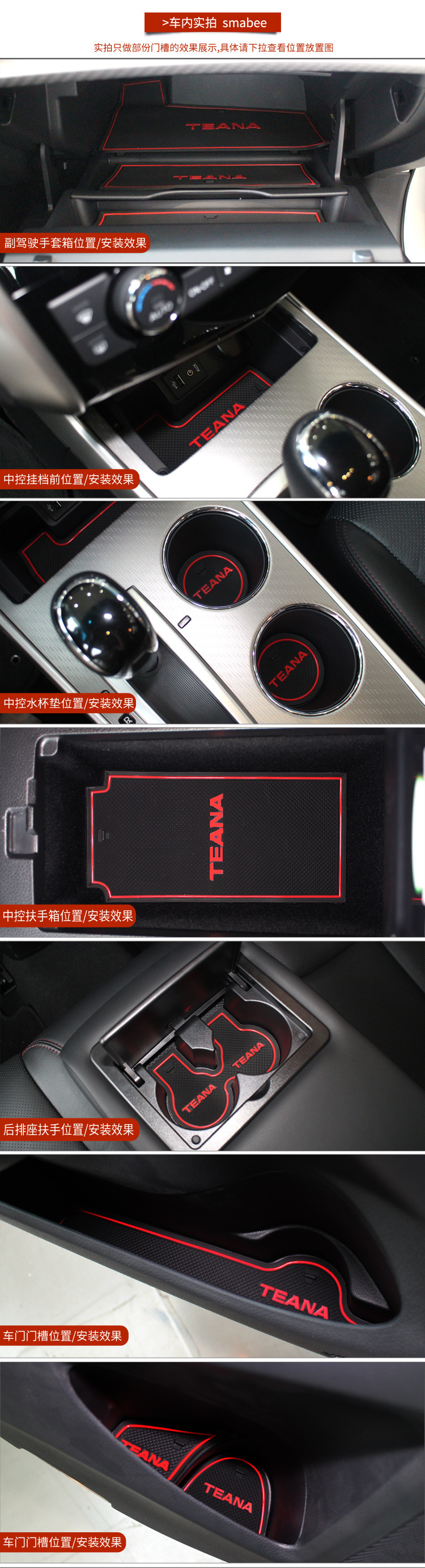 Car Door Slot Cup Mat Storage Pad Set for 2013-2018 Nissan Teana Center Console Armrest