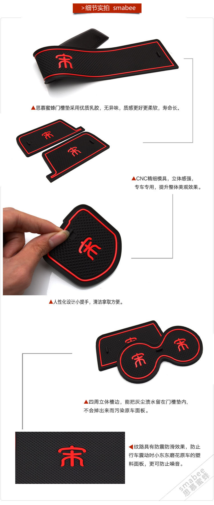 Car Door Slot Mat Cup Holder Liner Storage Pad for BYD Song 2016-2018