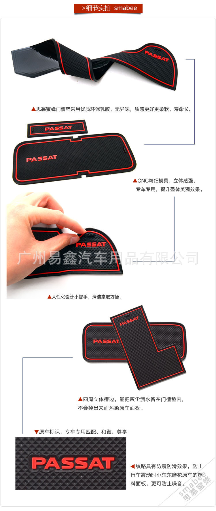 Car Door Slot Mat Cup Holder Liner Anti-Slip Storage Pad for Volkswagen Passat 2011-2015