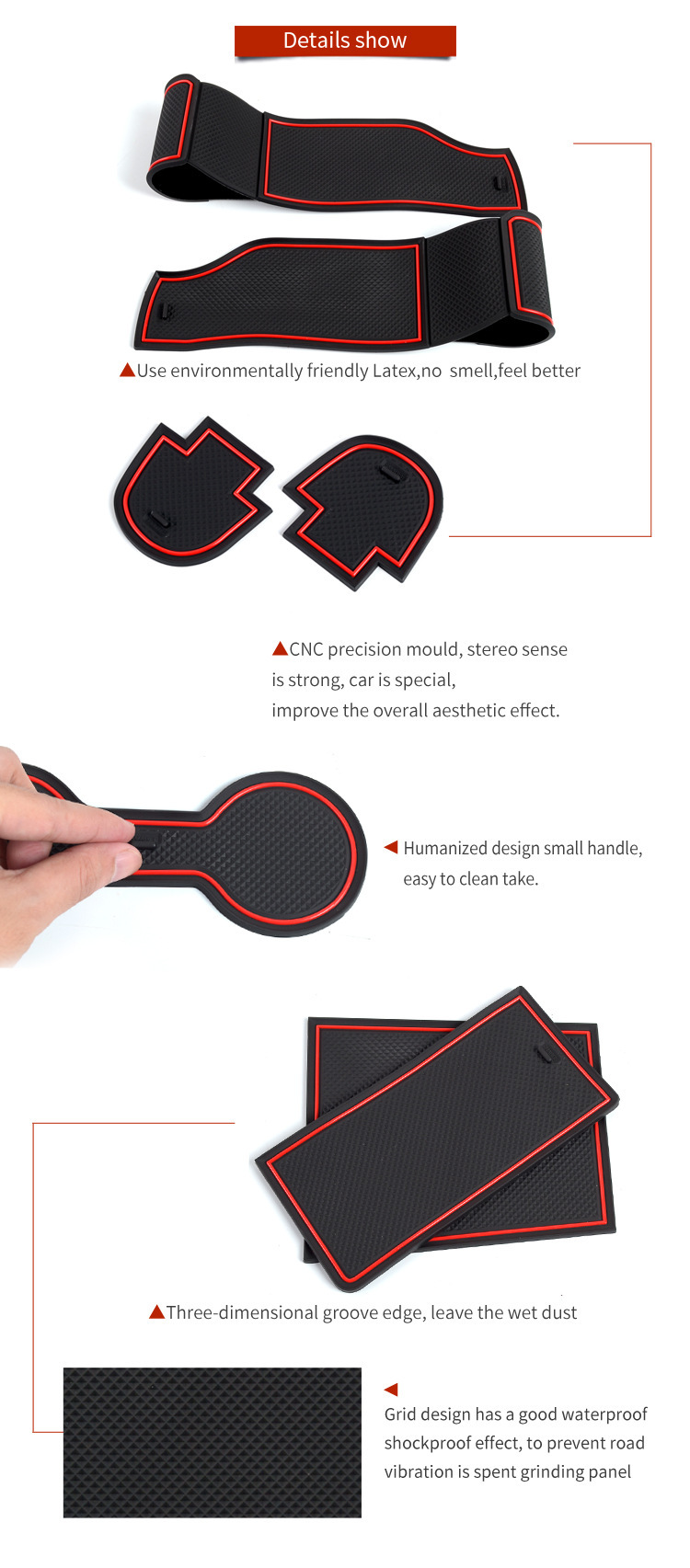 - Performance-Driven Design: Features an anti-slip textured surface, as pictured, to keep items secure and prevent rattling in door slots and cup holders.