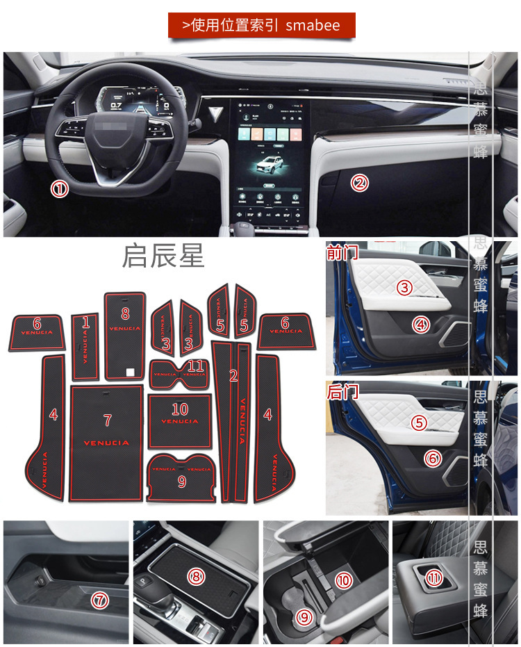 Car Door Slot Mat Interior Modification Armrest Box Storage Pad Center Console Storage Water Cup Slot Mat for Venucia Star