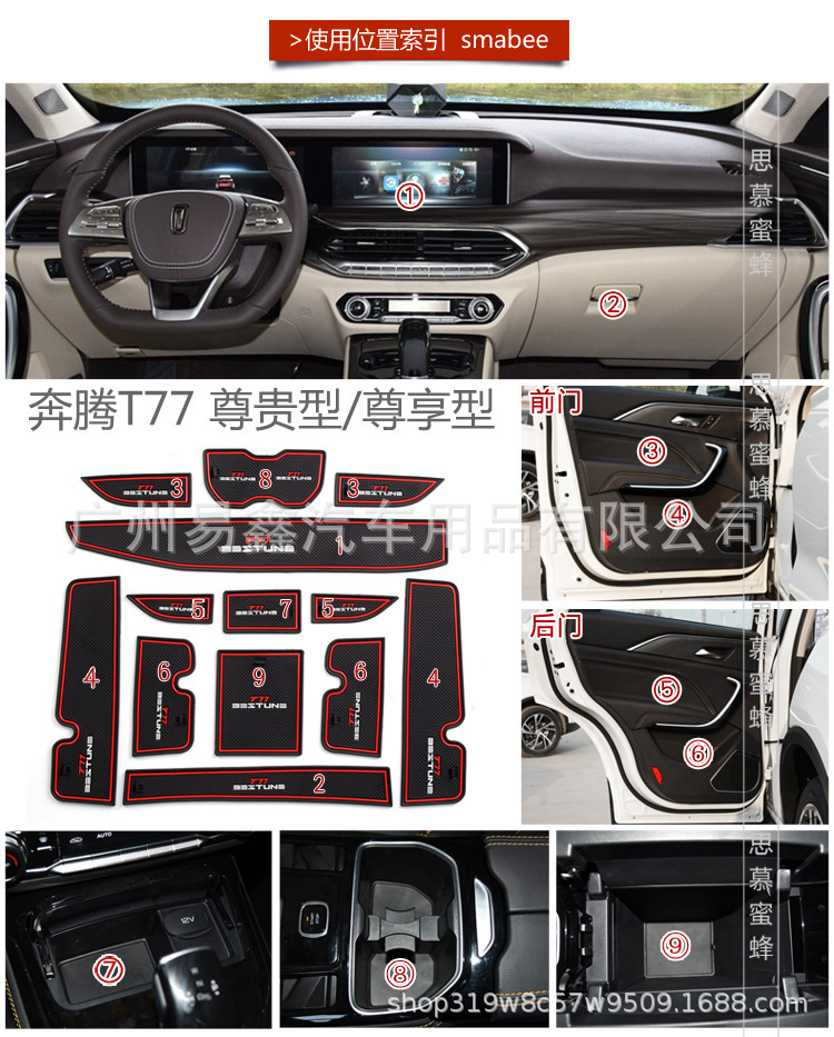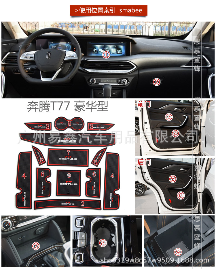 Car Door Slot Mat Storage Pad Dustproof Cup Holder Armrest Box Mat for Bestune T77
