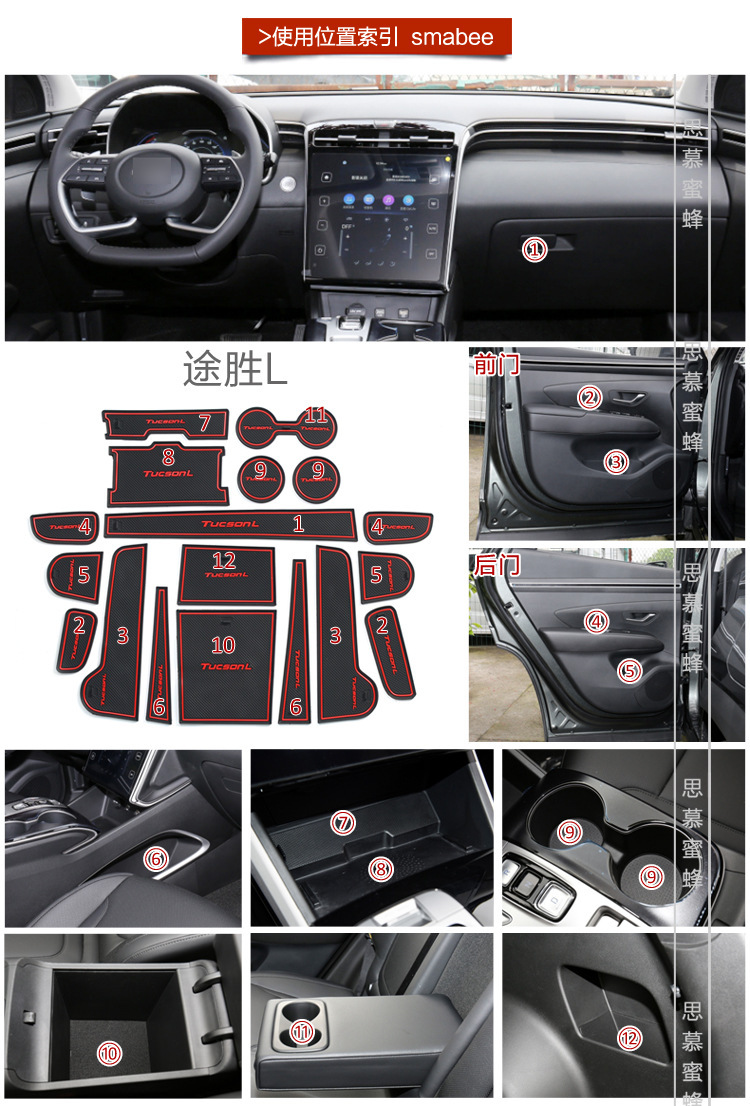Car Door Slot Mat Water Cup Slot Storage Pad Anti-Slip Decor for Hyundai Tucson L