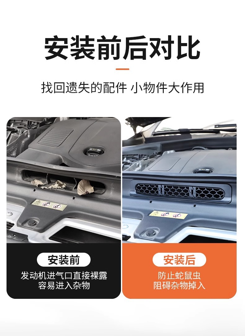 - Performance-Driven Design: Utilizes a precise 1:1 original car mold to ensure a perfect fit and prevent foreign objects from entering the engine air intake, keeping it clean and clog-free for optimal engine performance.