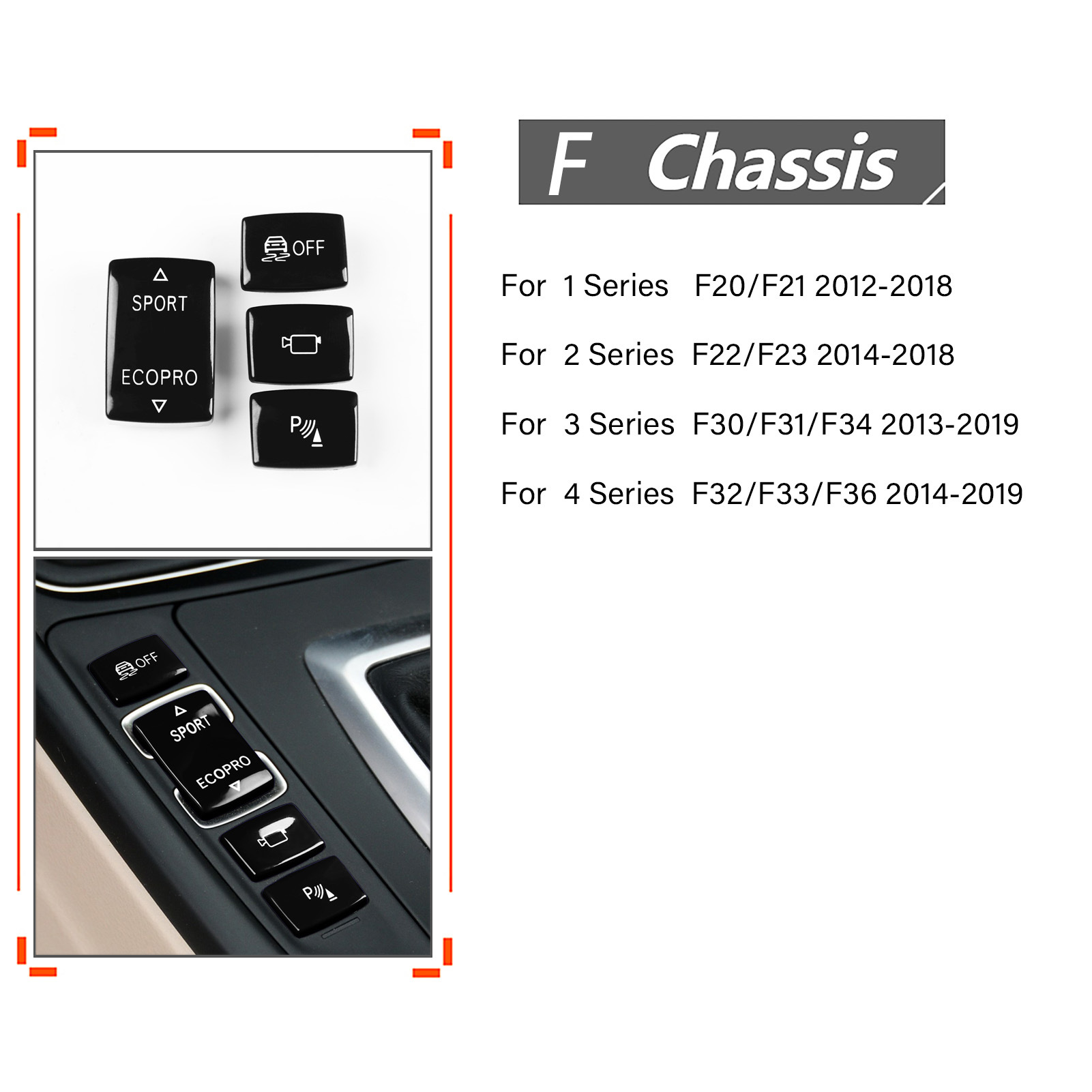 - Precise Fitment: Specifically designed for BMW F-Chassis 1 Series, 2 Series, 3 Series, and 4 Series models, ensuring a perfect match for your vehicle’s center console gear mode buttons.