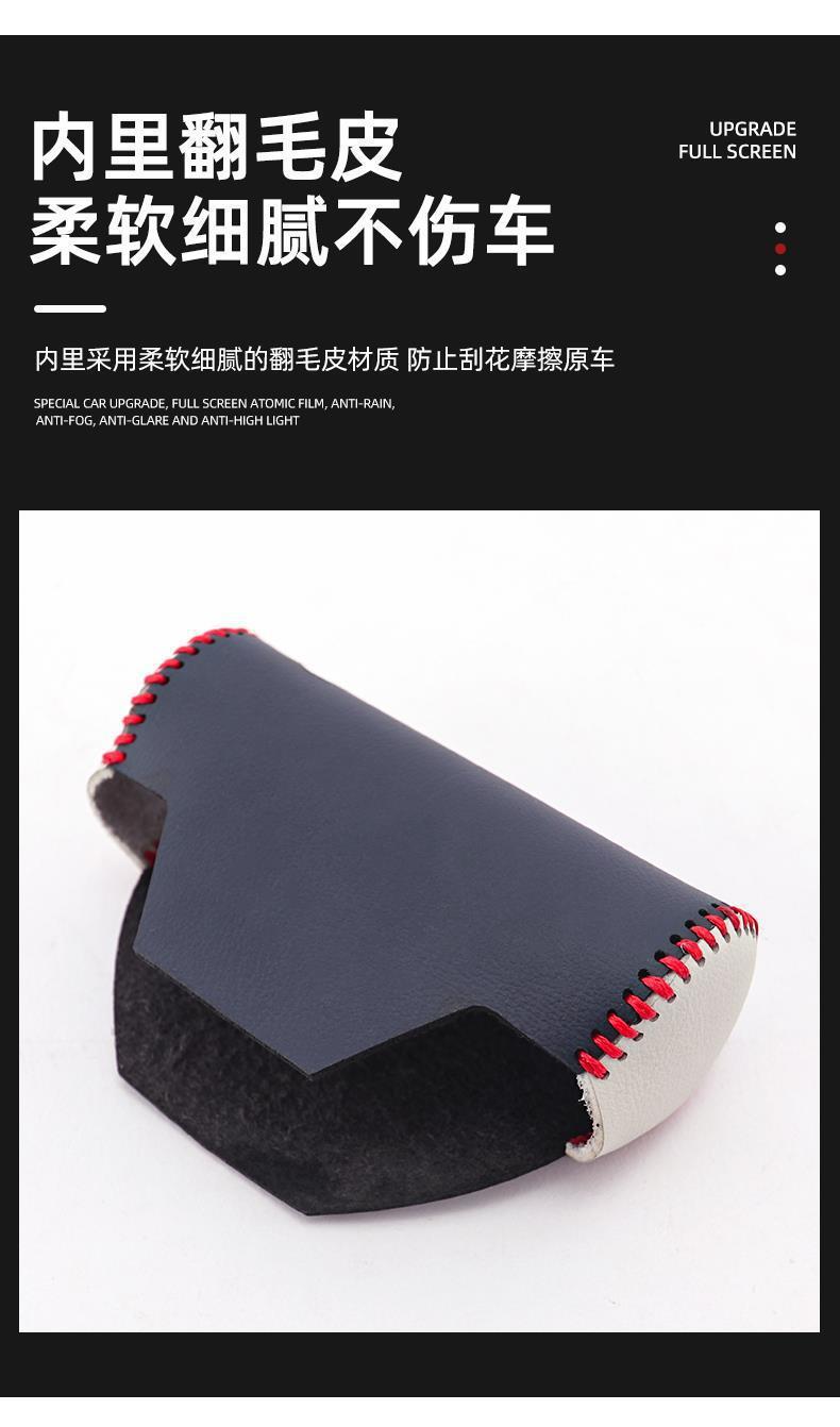 Car Gear Shift Knob Cover with BYD Yuan PLUS Logo, Blue with Red Stitching, PU Leather, for BYD Yuan PLUS