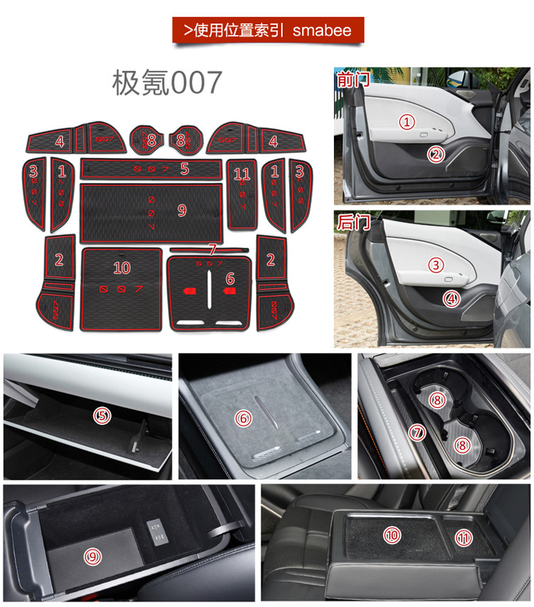 Car Interior Door Slot Mat Storage Box Armrest Dustproof Pad for Zeekr 007 2024