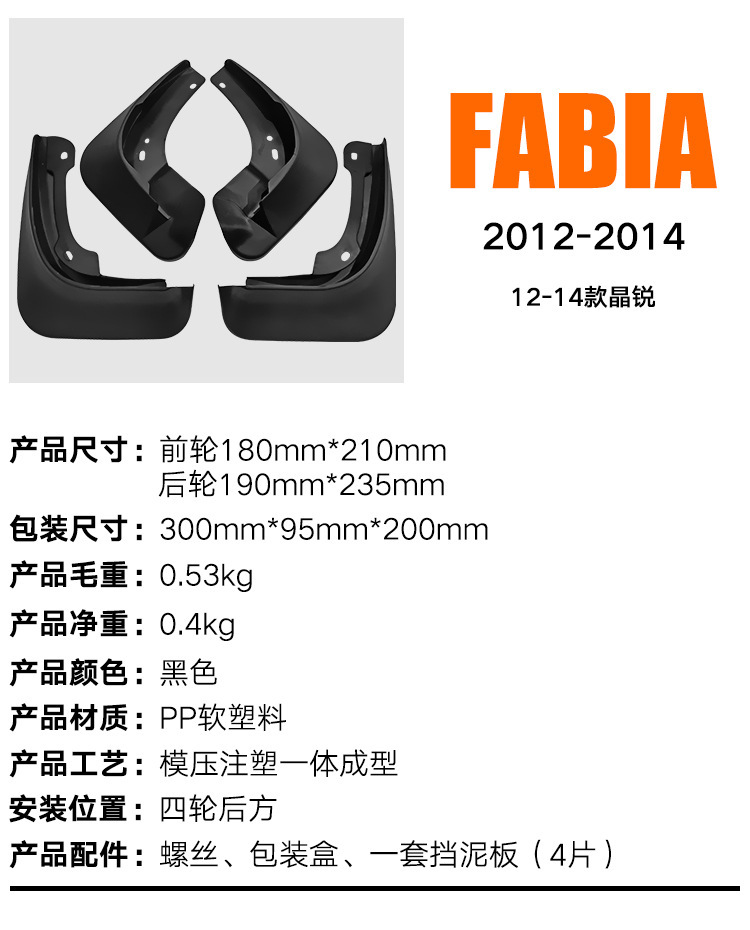 Car Mud Flaps Splash Guards for Skoda Fabia 2012-2014