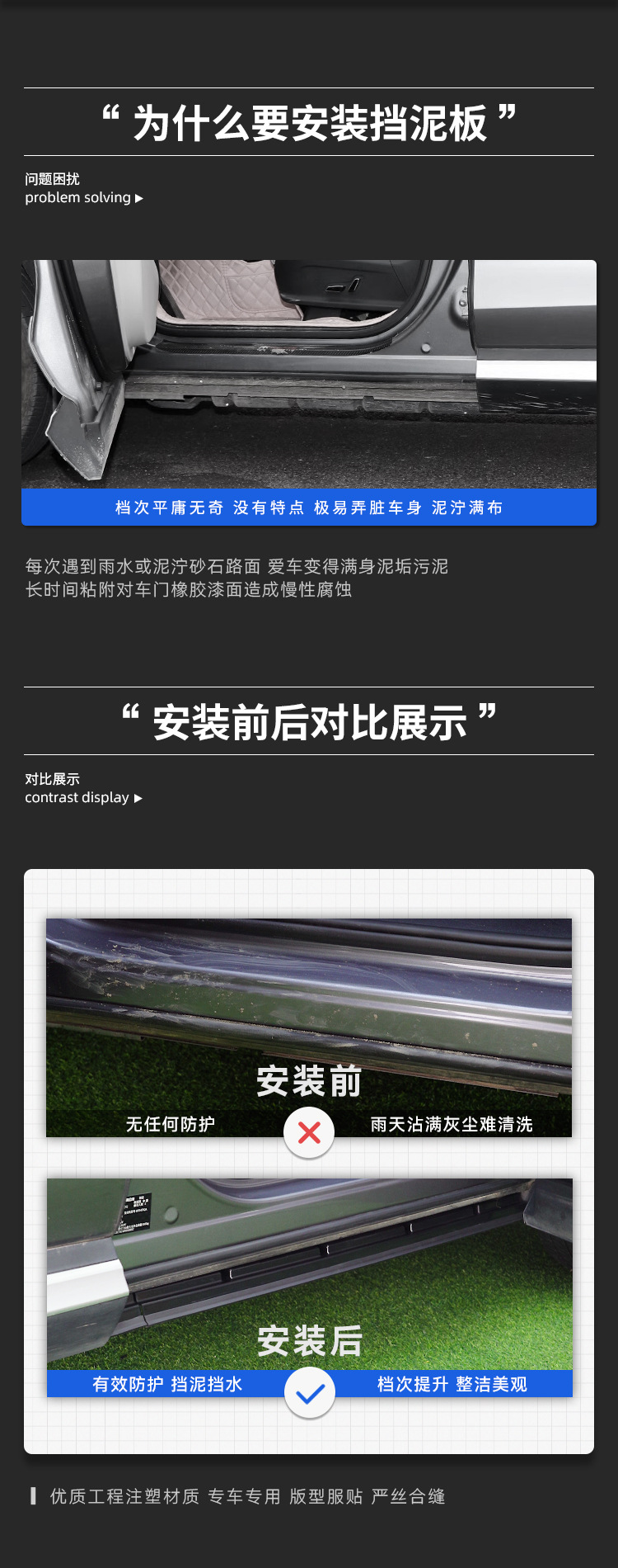 - Performance-Driven Design: Designed to effectively block mud and splashes, protecting your vehicle’s paint and underbody from road grime and chips.