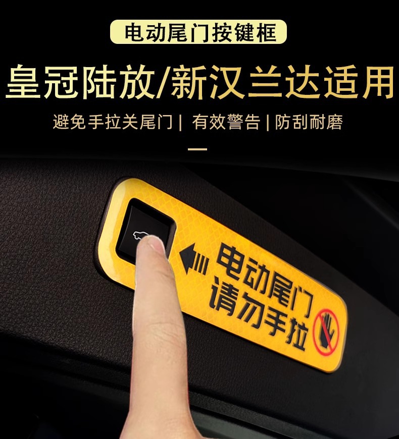 Car Power Tailgate Warning Sticker Decal for Toyota Highlander Crown Kluger Grand Highlander Sienna Granvia