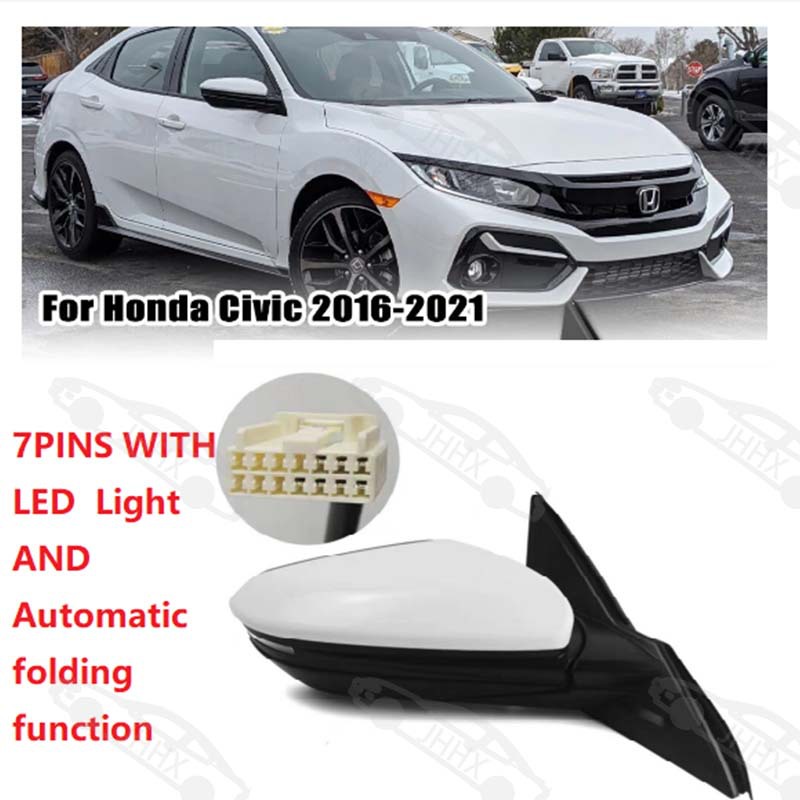 Car Rear View Mirror Assembly with 7 Pins LED Light and Automatic Folding Function for Honda Civic 2016-2021