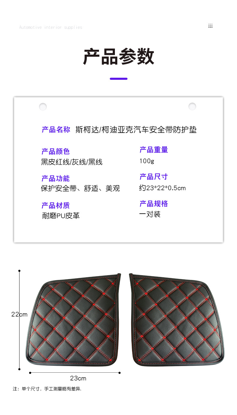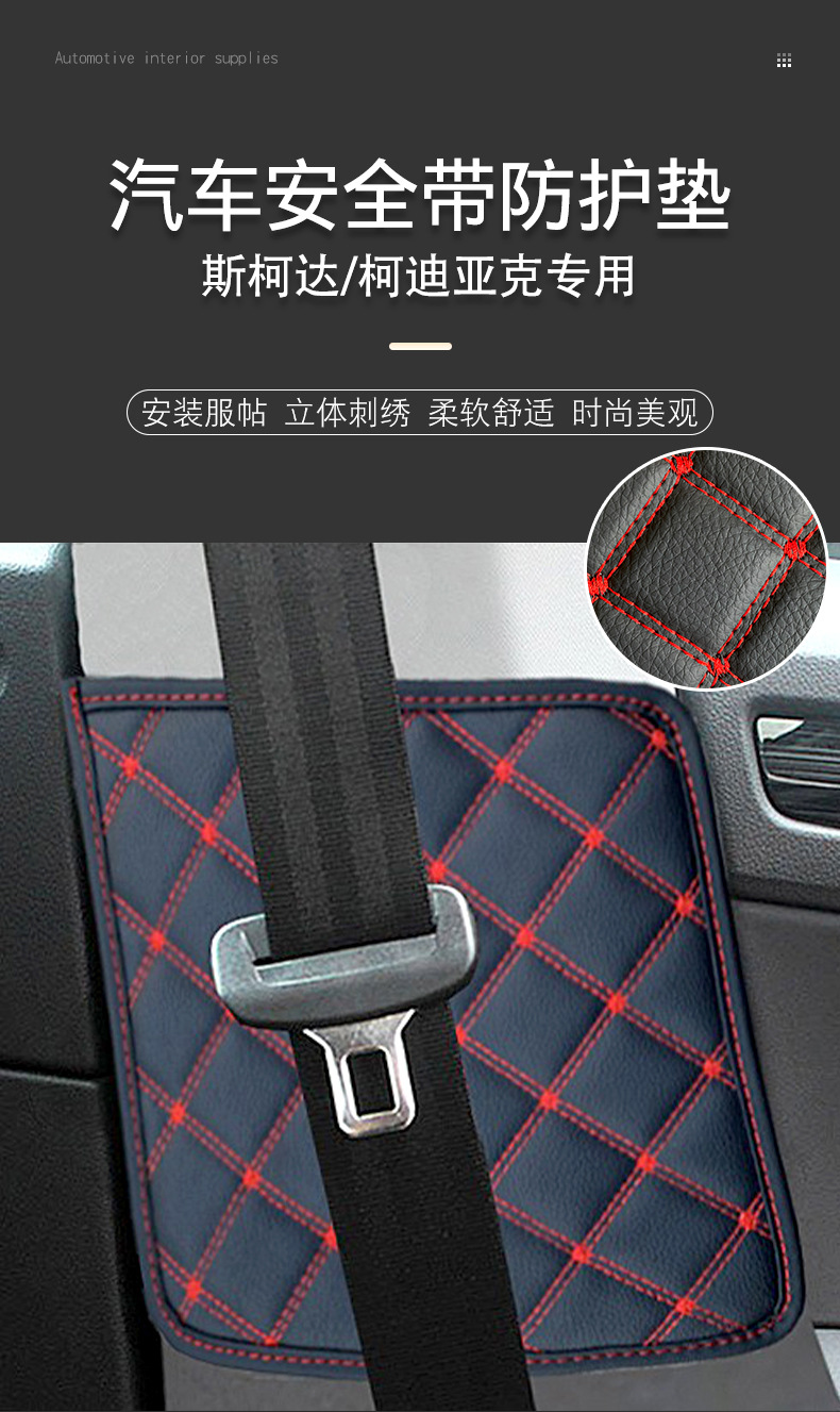 Car Seat Belt Pad Cover with Red Stitching for Skoda Kodiaq