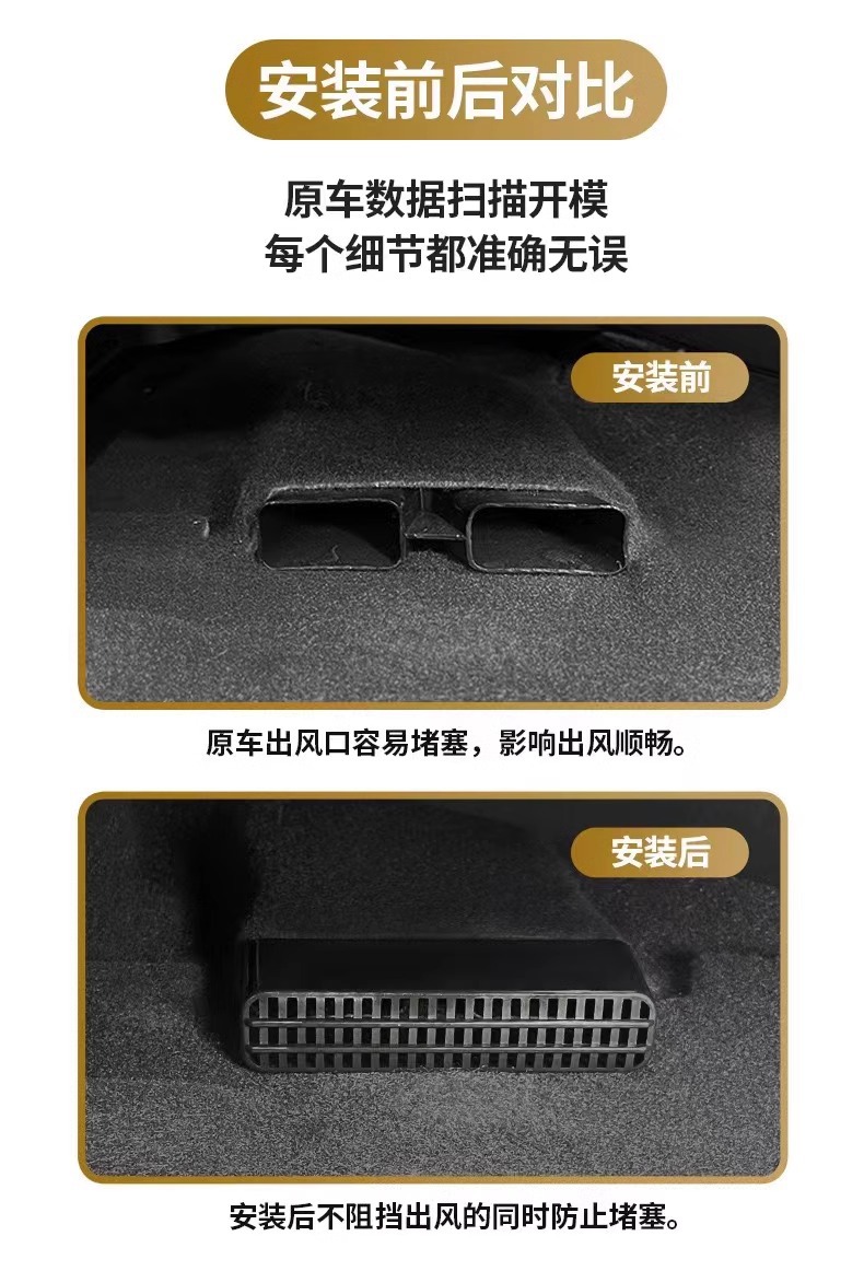 - Performance-Driven Design: Effectively prevents dust and debris from entering the air outlet without obstructing airflow, maintaining cabin air quality.