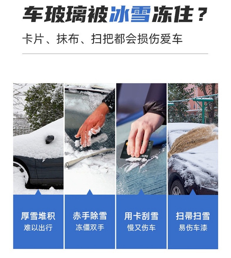 - Efficient Snow & Ice Removal: Designed for quick and effective clearing of snow and ice from car windshields, side windows, and mirrors, ensuring clear visibility for safe winter driving.